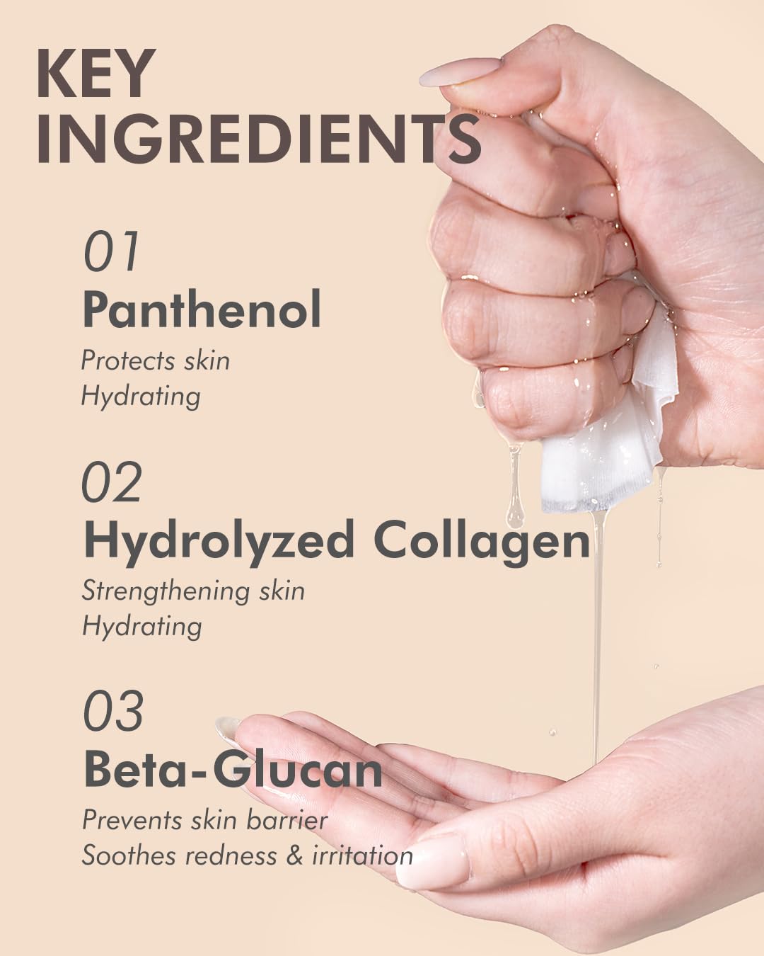 - POWERFUL SKIN NOURISHMENT: Experience the potent combination of hydrolyzed collagen (2,000 ppm), vitamin E, panthenol, and beta-glucan. Together, these ingredients deeply nourish the skin, leaving it soft and resilient against daily stressors.