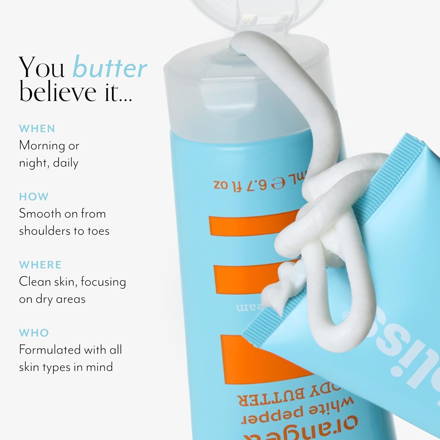 Bliss Body Butter - Blood Orange and White Pepper - Maximum Moisture Cream - 6.7 Fl Oz - Body Lotion for Dry Skin - Long-Lasting Moisturizer for Women & Men - Vegan and Cruelty-Free