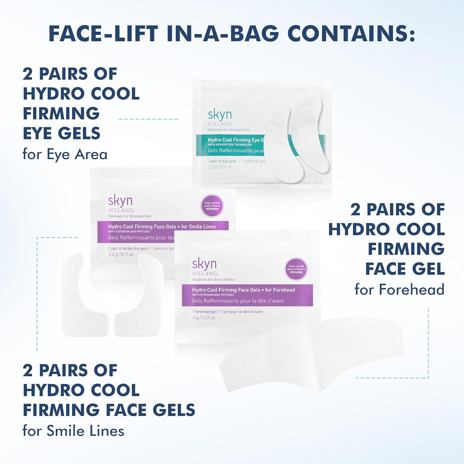 skyn ICELAND Facelift in-a-Bag, Firming Hydrogel Masks for Forehead, Smile Lines and Under Eyes. Cooling Gel Facial Patches with Peptides and Coenzyme Q10. Treatment for All Skin Types, Vegan, 6 Pcs.