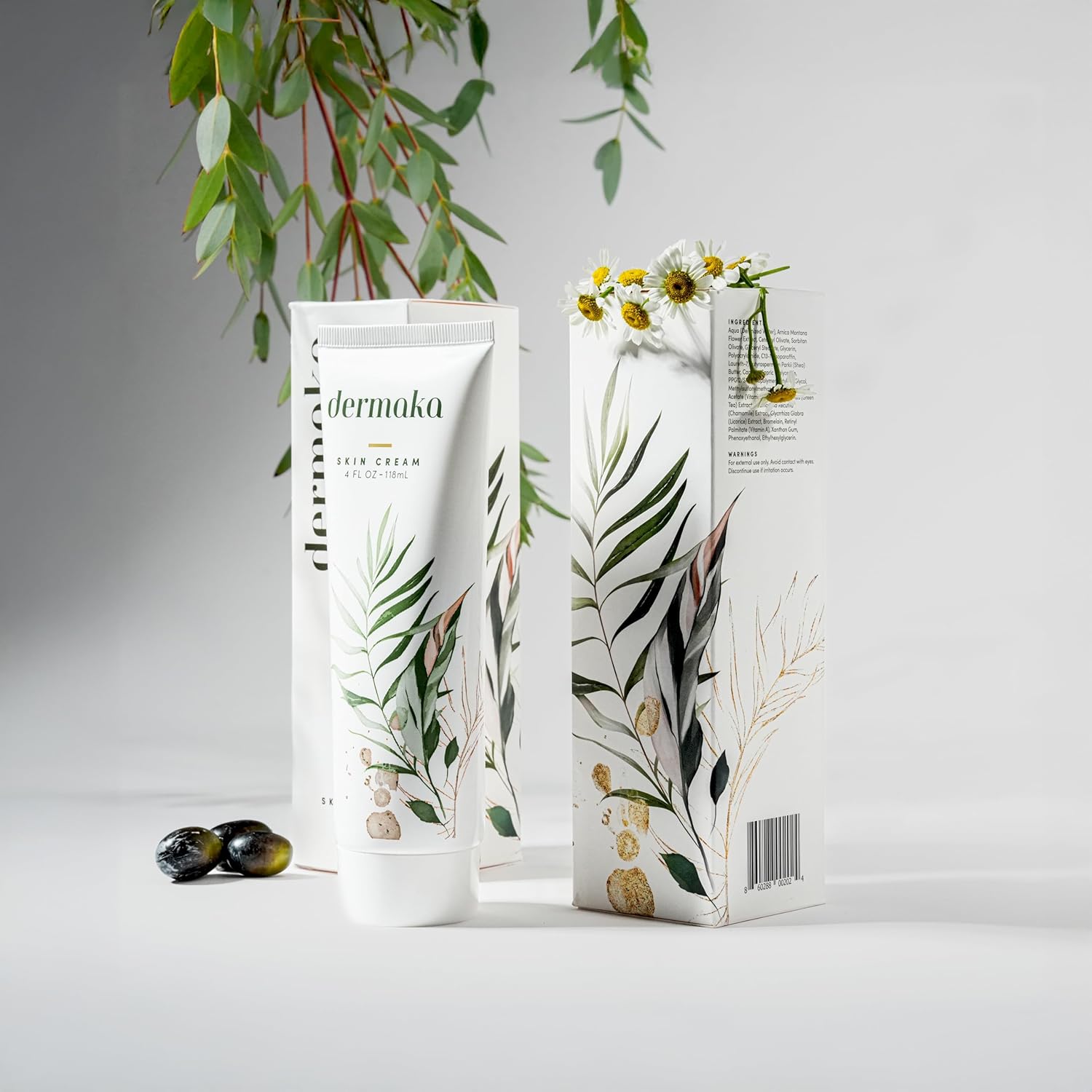 - ALL NATURAL: Dermaka Cream is made of all natural plant extracts with added vitamins to support skin health. Formulated with Arnica Montana, Bromelain, Licorice Extract, Chamomile Extract, Green Tea Extract, Vitamin A (Retinol), Vitamin E and an Olive Oil Base