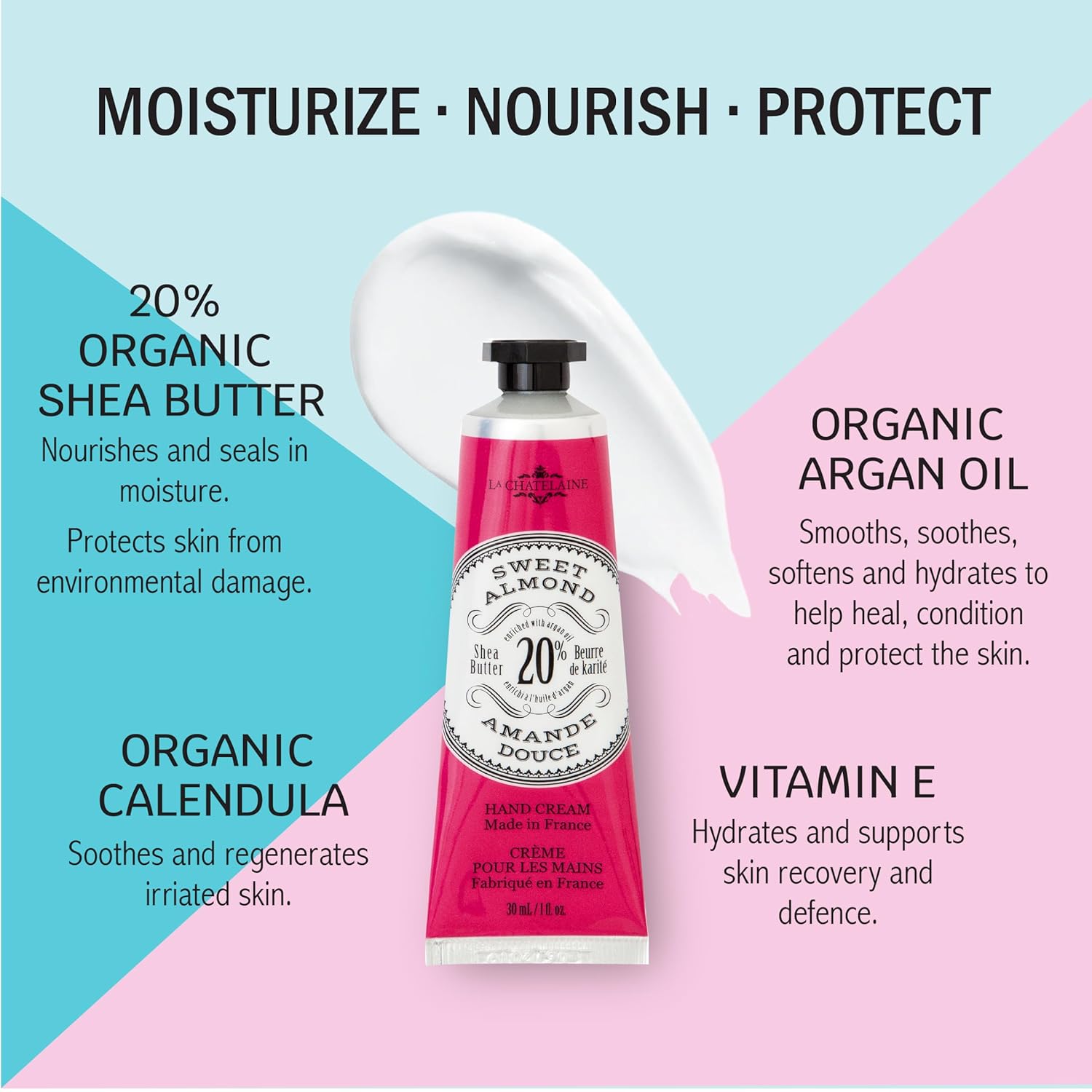 La Chatelaine 20% Shea Butter Hand Cream Travel Size Tin, Gift Set for Women, Nourishing Hand-Care Set for Mother's Day (Coconut Milk, Shea, Lychee Cranberry)