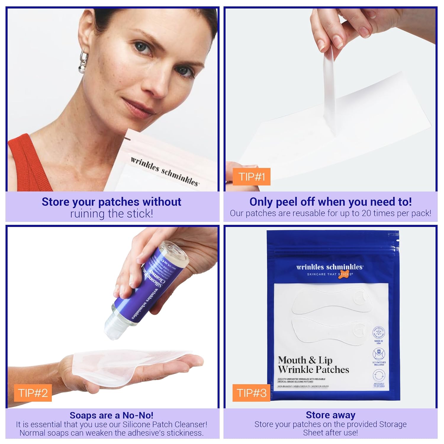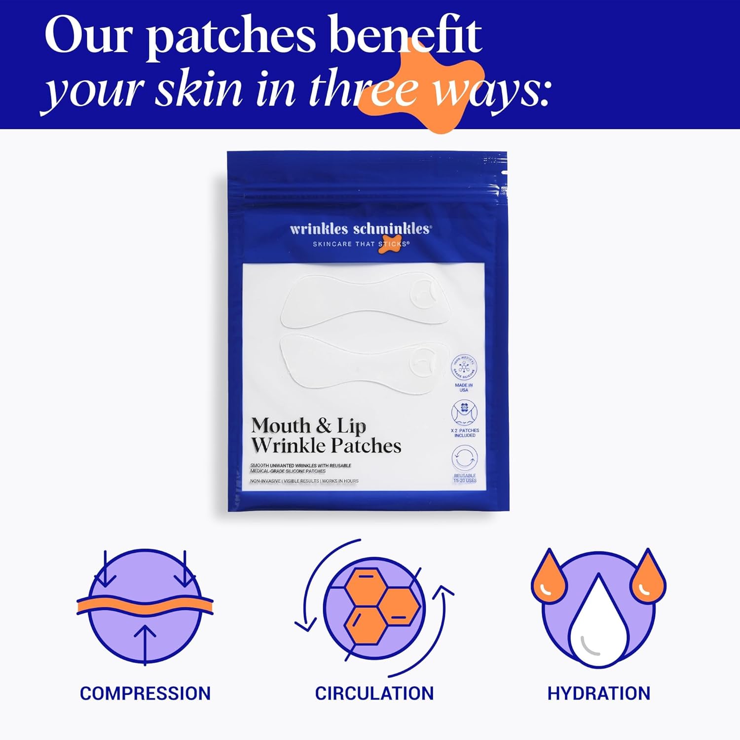 Wrinkles Schminkles Mouth & Lip Wrinkle Patch - Reusable Silicone Smoothing Pads for Noticeable Wrinkle Reduction - Lip Wrinkle Prevention for Youthful, Smooth Skin (2 Pack)