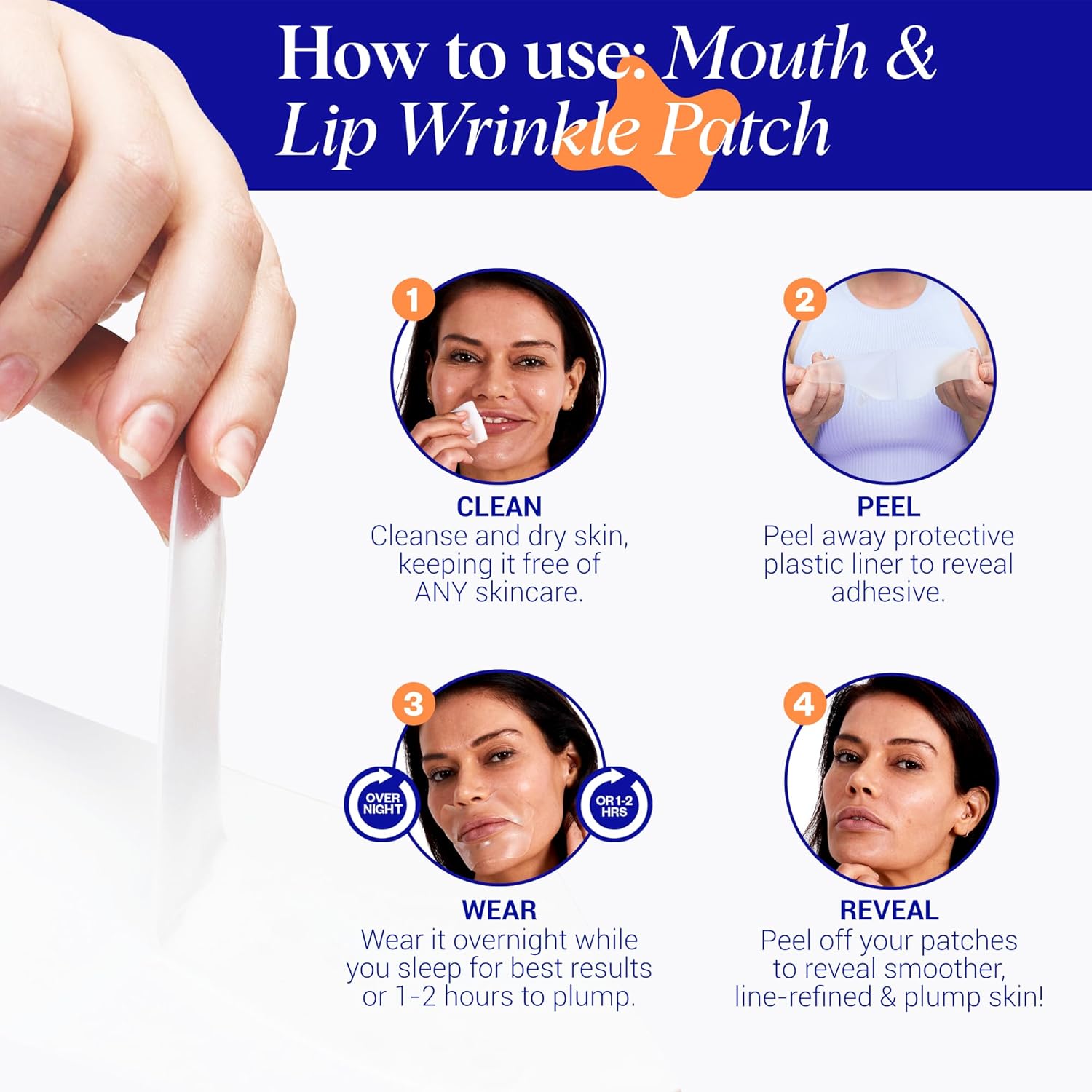 - REAL WRINKLES, UNREAL RESULTS: Ideal for overnight use when your skin clicks into repair mode or for 1-2 hours day for a quick boost, our skin-safe, reusable Mouth Wrinkle Patches create an occlusive layer, pulling the skin taut to prevent creasing. Simultaneously boosting hydration, collagen production, and overall skin resilience.