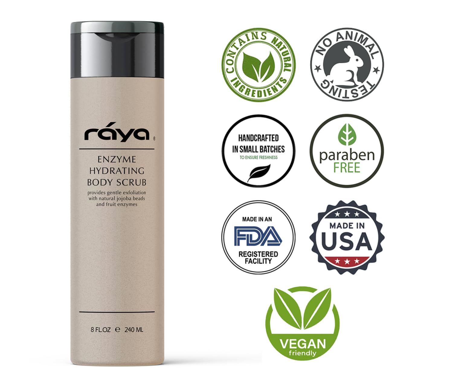 RAYA Enzyme Hydrating Body Scrub 8 oz Orange Vanilla Scent (S-104) | Gentle and Exfoliating Body Scrub | Made with Seaweed, Jojoba Beads, and Fruit Enzymes