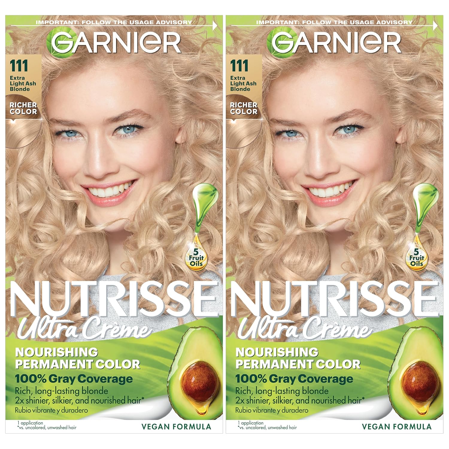 Garnier Hair Color Nutrisse Nourishing Creme, 111 Extra-Light Ash Blonde (White Chocolate) Permanent Hair Dye, 2 Count (Packaging May Vary)