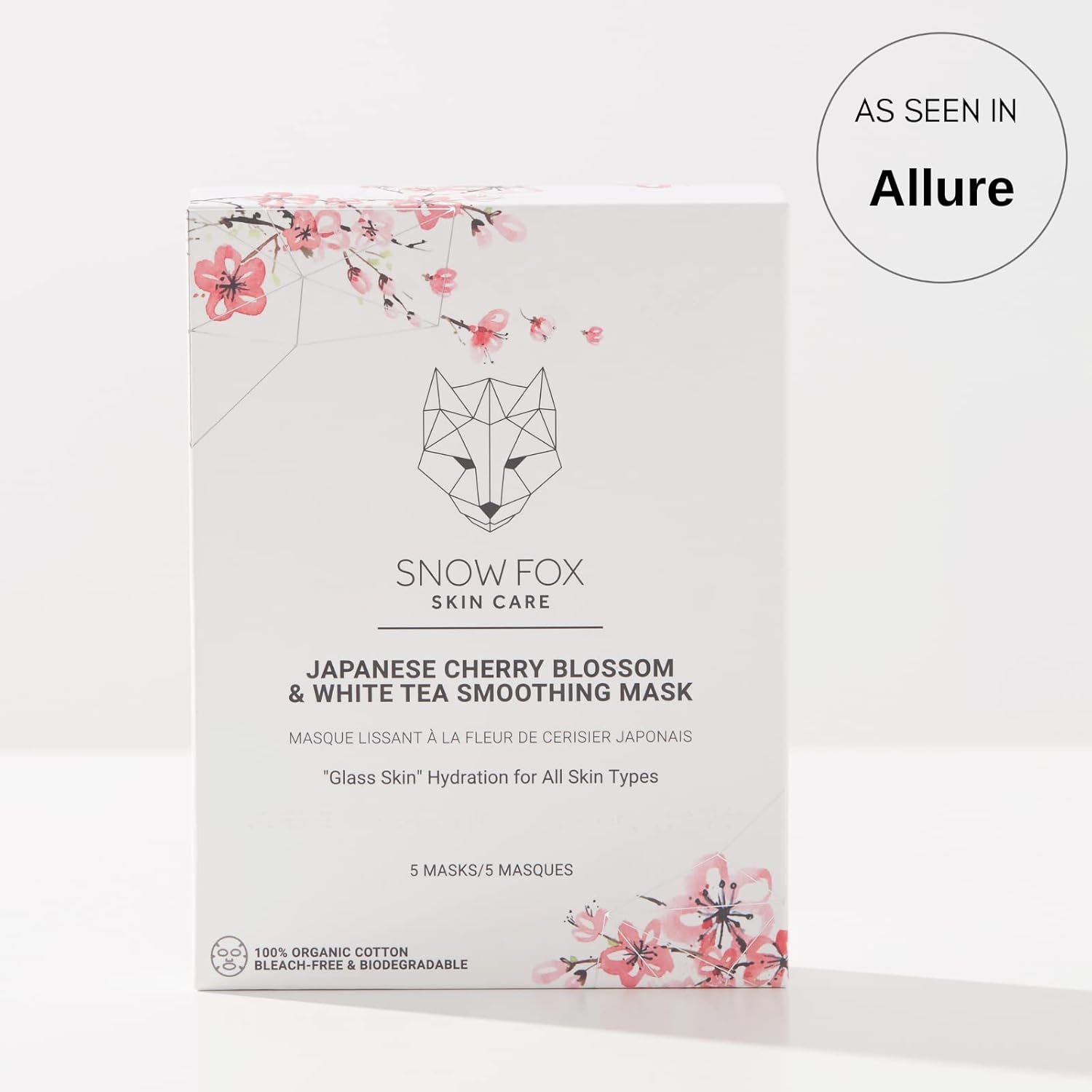 Snow Fox Skincare Japanese Cherry Blossom & White Tea Soothing Mask, 5 Mask