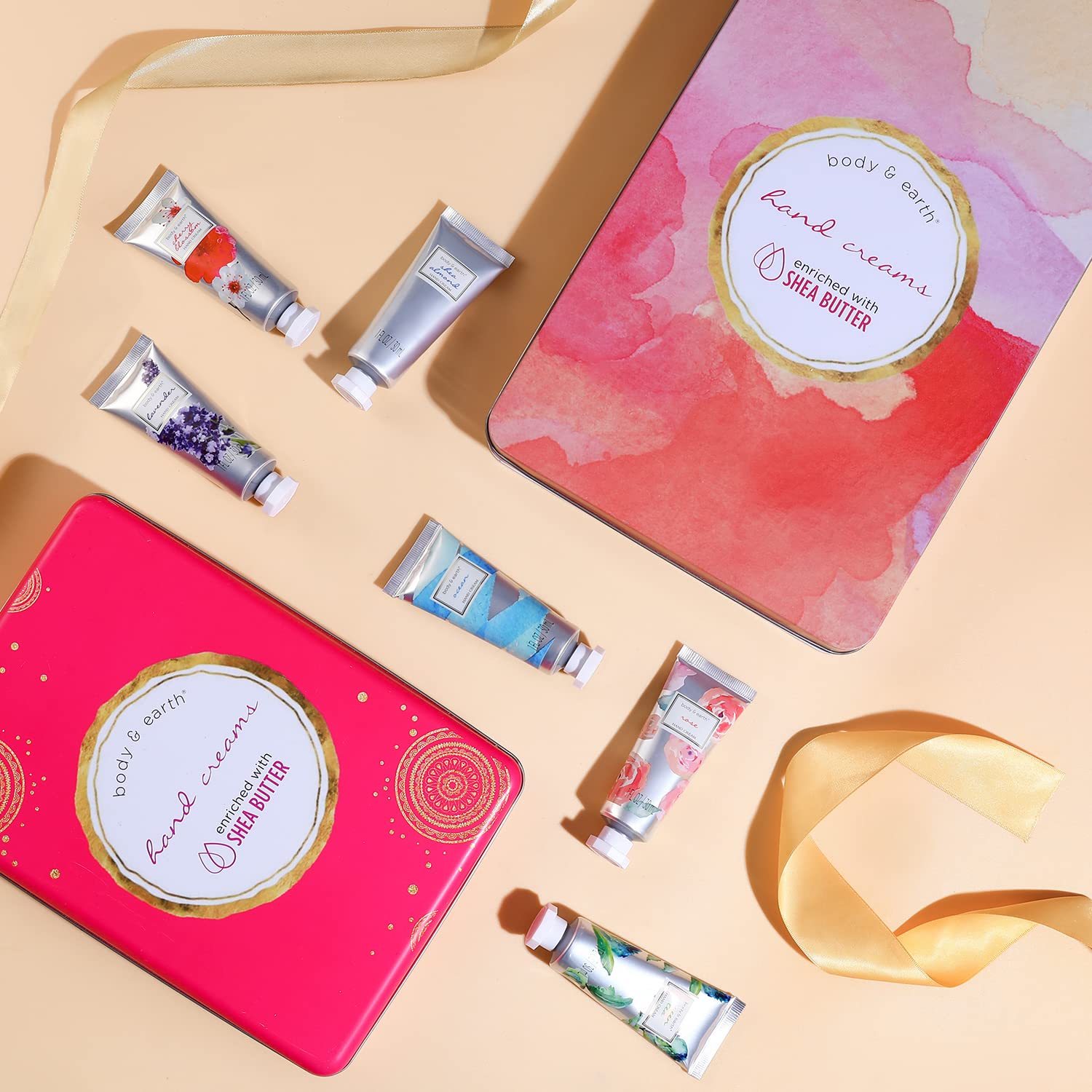 - Natural Ingredients: Body&Earth hand lotion set enriched with shea butter, natural glycerin and vitamin E, cruelty free and suit to all skin types, lightweight and non-greasy formula feels comfortable on the skin all day.