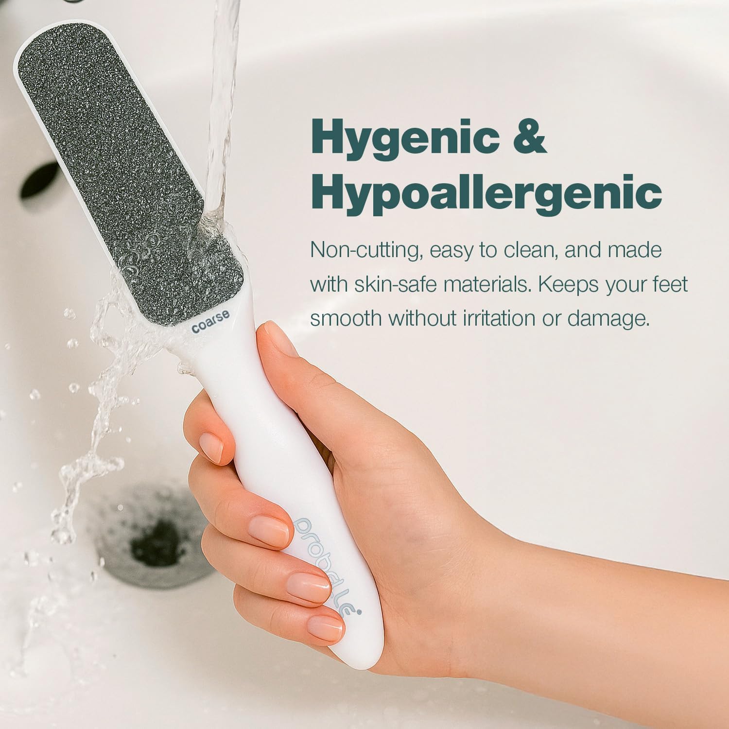- EASY TO CLEAN AND HYPOALLERGENIC β Our premium foot scraper for dead skin is made of hypoallergenic and quality components, has a non-cutting finishing, cleans easily and is also very sanitary