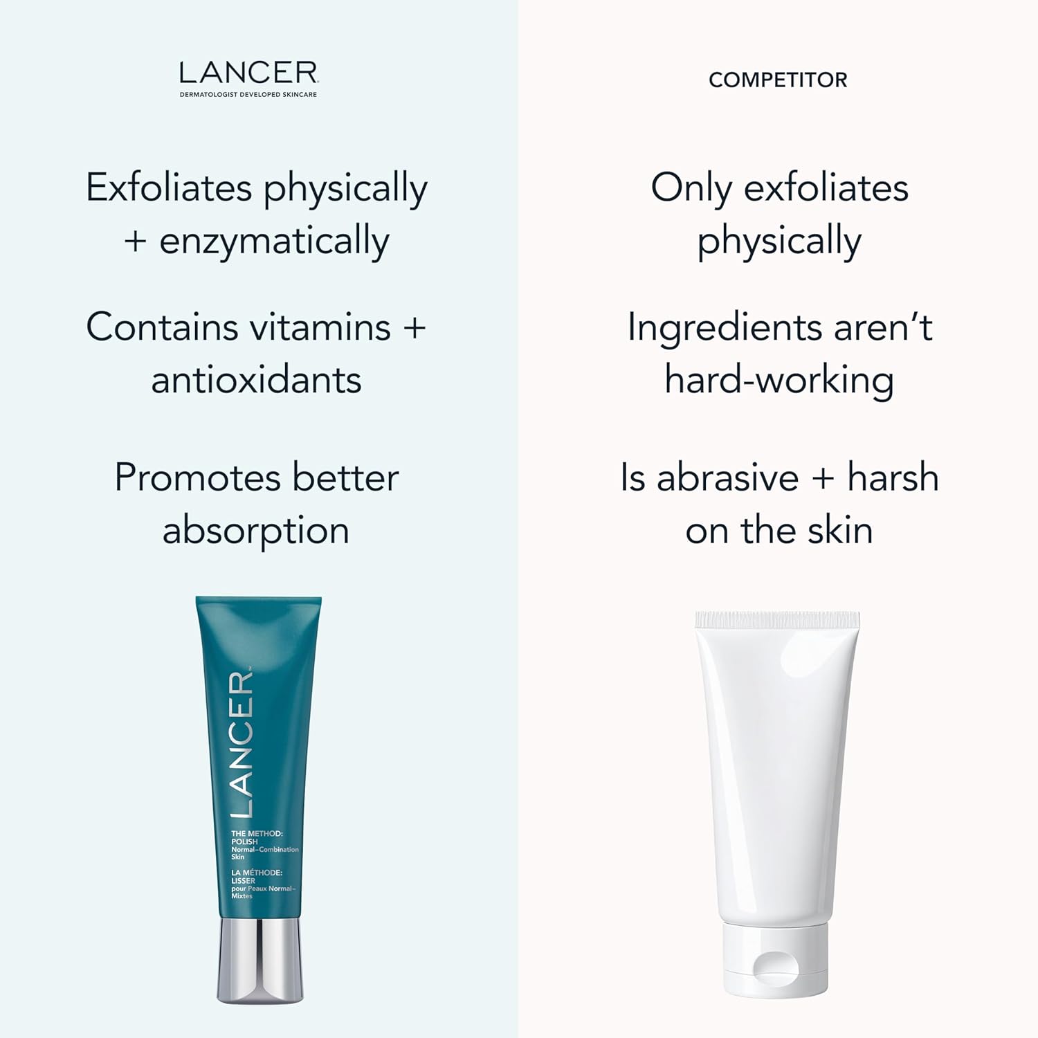 Lancer Skincare The Method: Polish Facial Exfoliator, Daily Exfoliation Face Scrub with Natural Minerals, Polish Normal-Combination Skin, 2 Fluid Ounces