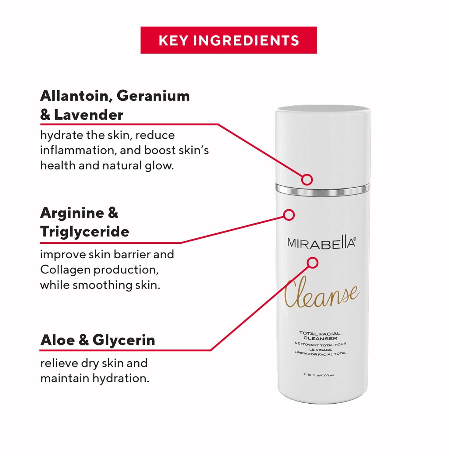 Mirabella Cleanse Total Facial Cleanser - Hydrating Gentle Cream Cleanser for All Skin Types - Face Cleanser & Makeup Remover - Face wash for Sensitive Skin & Oily Skin Formula