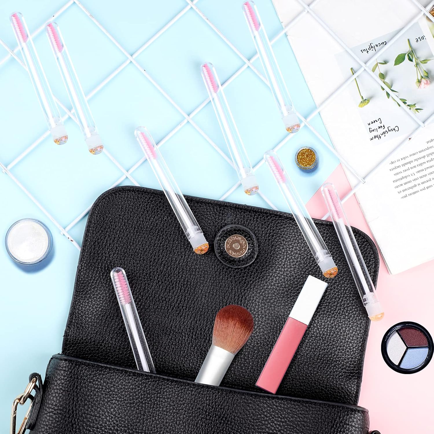 50pcs Eyelash brush Lash Wand Makeup tool Eyelash Extension supplies Cleaning brush Diamond Mascara foil pink