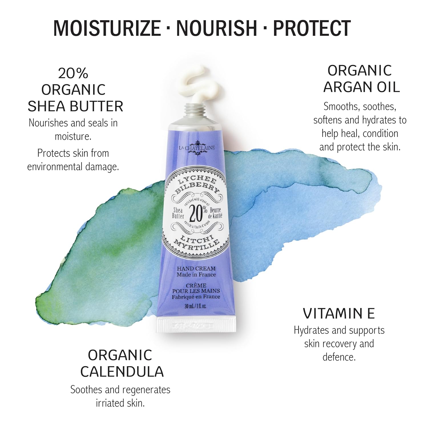 La Chatelaine Hand Cream Trio Tin Gift Set, Ready-To-Gift Tin, Nautral, Made in France with 20% Organic Shea Butter, Nourishing and Moisturizing (Amber Cashmere, Coconut Milk, Lychee Bilberry or Shea)