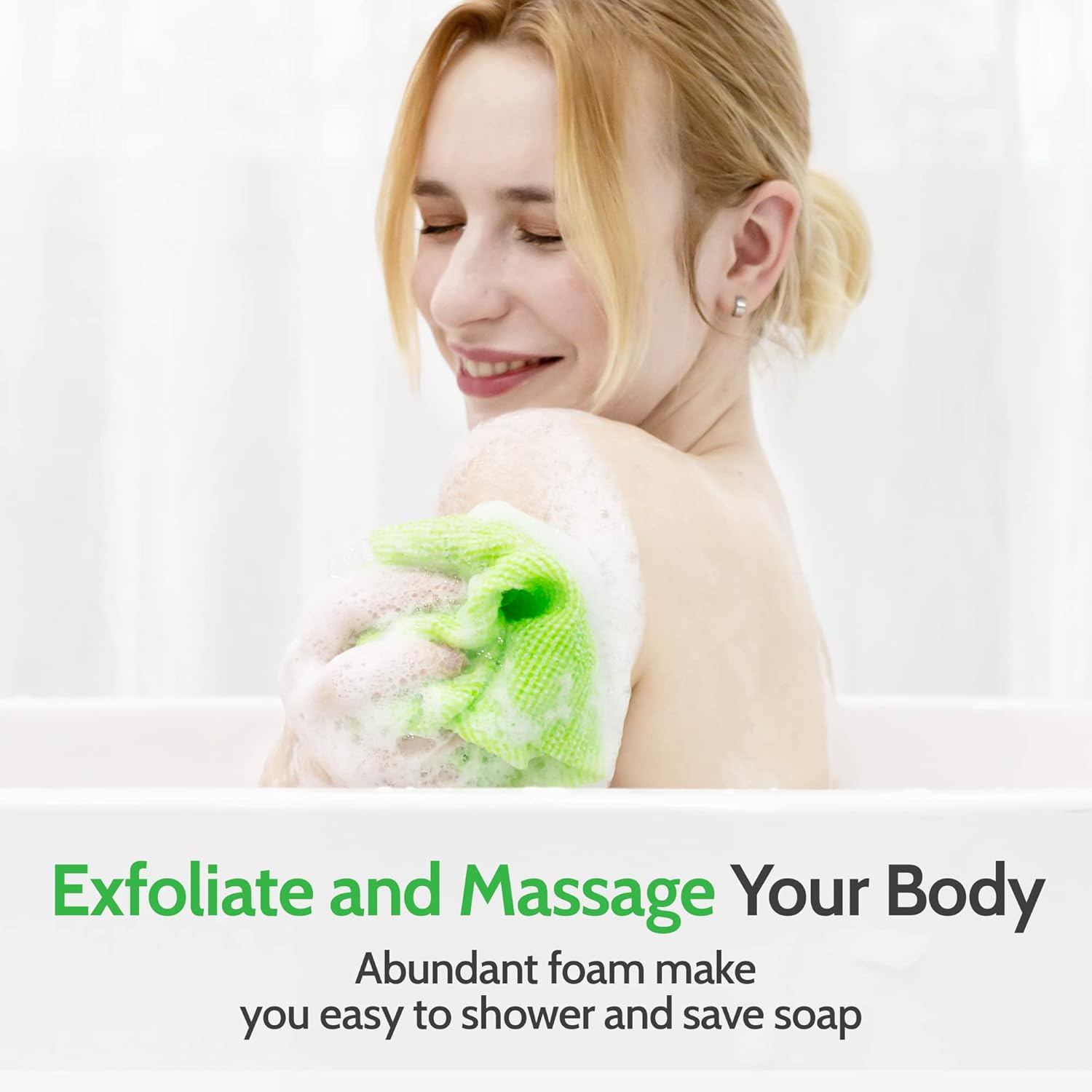Modu 3 PCS Long Exfoliating Washcloth - African Bath Net Sponge Loofah Japanese Washcloth Body & Back Scrubber for Shower, Deep Cleansing (Sky Blue, Yellow, Green)