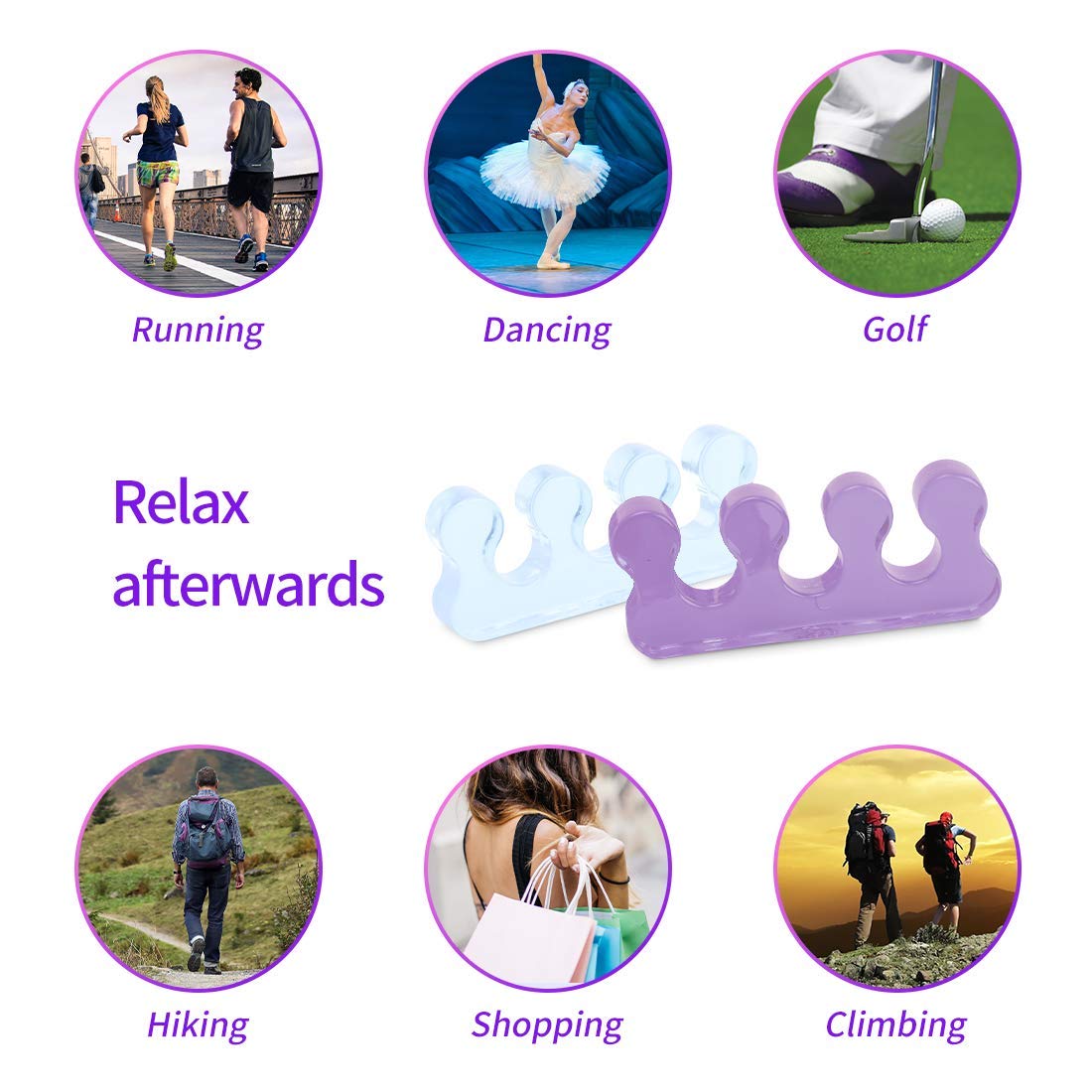 - 🙍【Use scene】: Bright,dreamy and transparent jelly color.Whenever you want to apply nail polish perfectly on your toenails,youonly need to wear toe separator to keep each toe straight and separate fromother toes.When the nail polish is polished,it can separate toes well and preventwet toenails from staining the nearby toes.