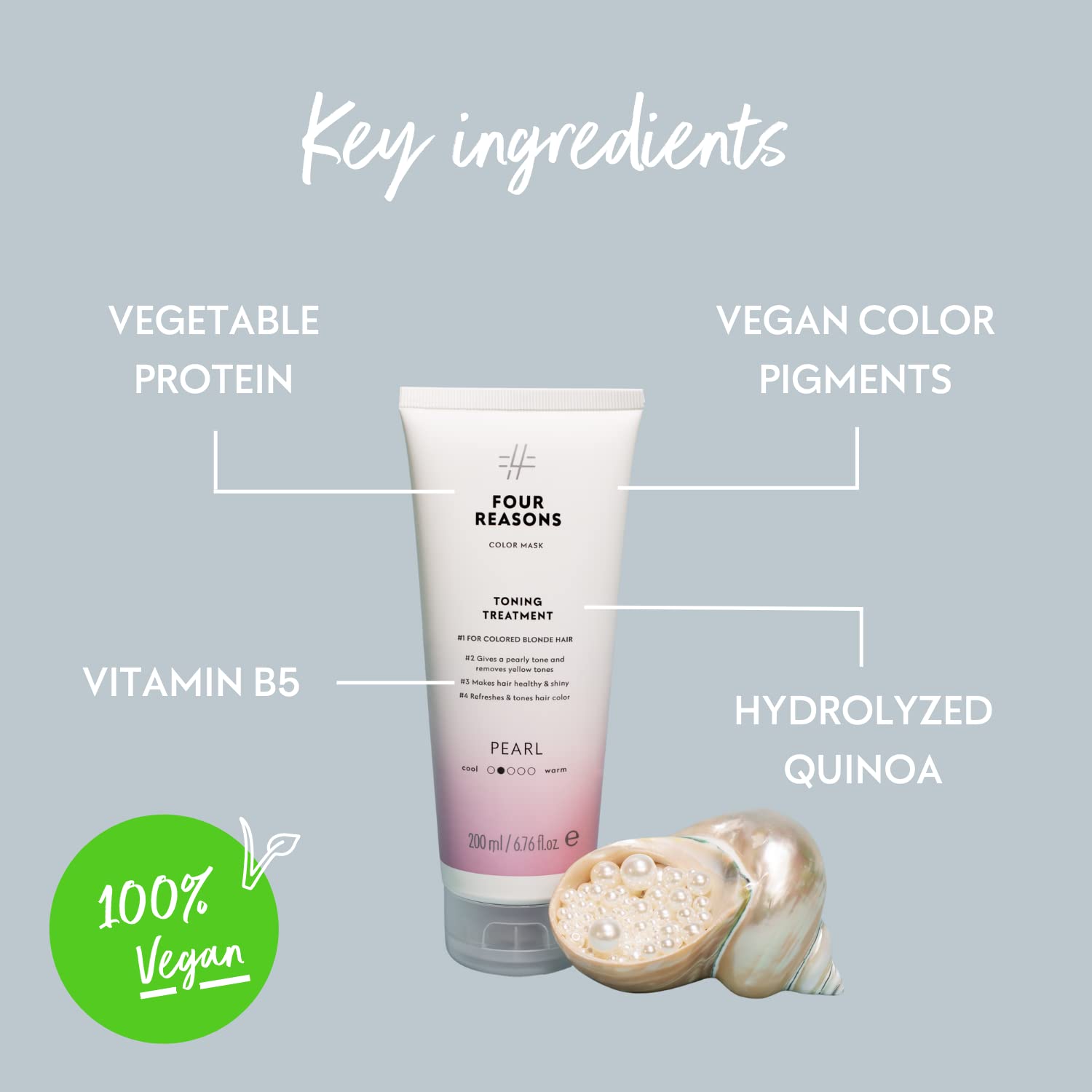 - UNIQUE FORMULA: Unlike other color depositing conditioners, Color Mask Silver Pearl Toning Treatment gives your hair strength and nourishment with the help of plant-based proteins and amino acids. The end result is healthy hair with a vibrant cool pearlescent blonde tone.