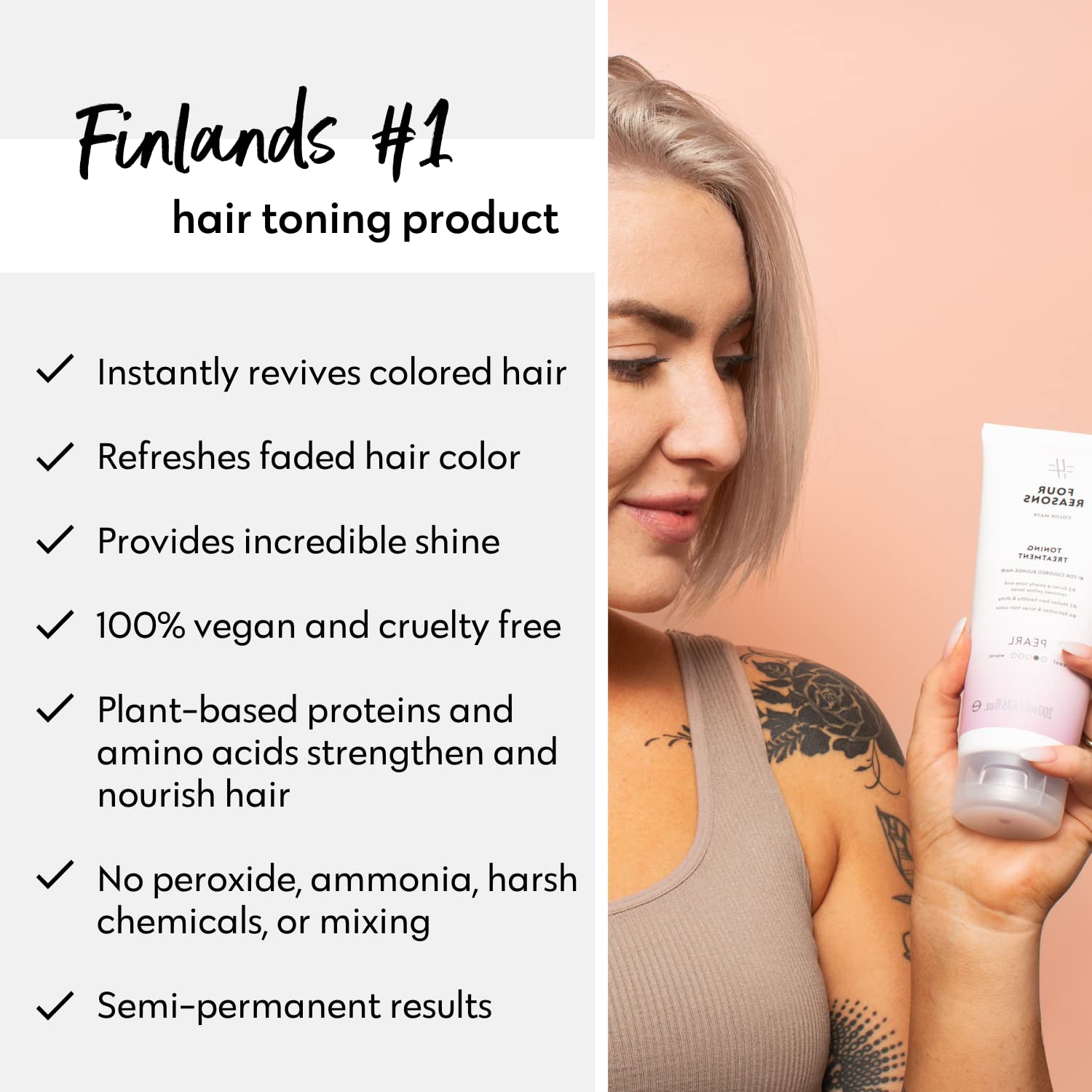 - REFRESH HAIR COLOR AND ELIMINATE YELLOW TONES: Use instead of a regular conditioner to maintain a cool blonde. Note that your hairβs porosity, condition and current shade affect the resultβs evenness. Pair with Four Reasons Color Mask Pearl Shampoo for an even stronger toning effect.
