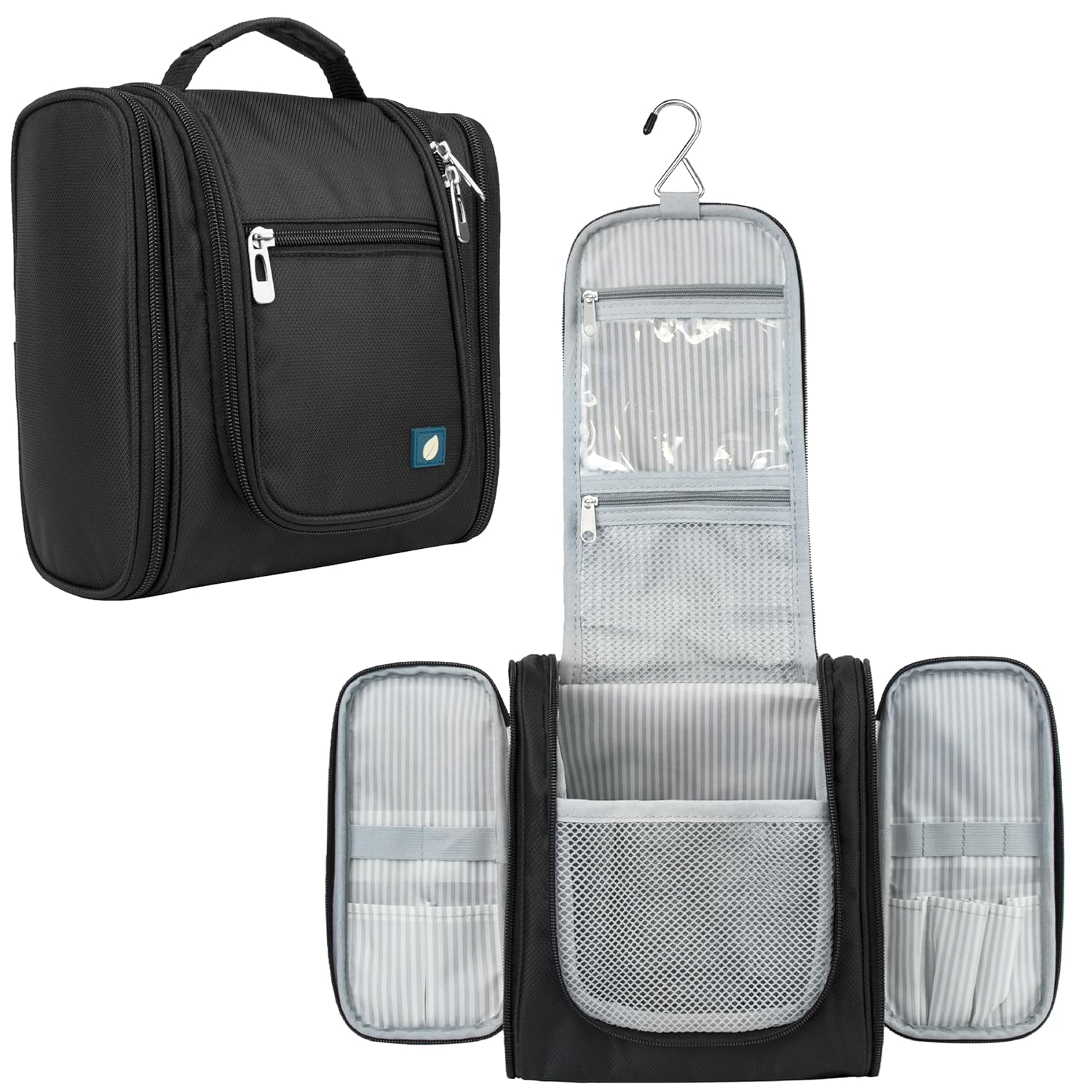 PAVILIA Toiletry Bag Travel Bag for Women Men, Hanging Cosmetic Organizer, Water Resistant Makeup Bag for Accessories Toiletries, Large Travel Essentials Kit (Black)