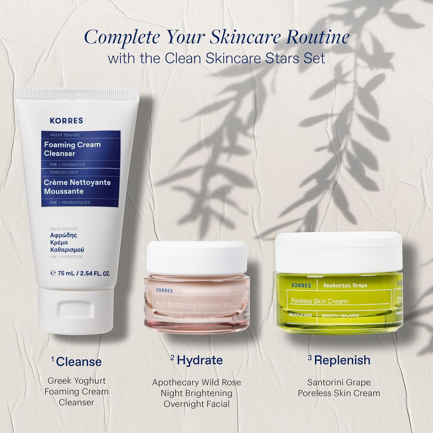 - KORRES: Korres is a clean ingredient-first Greek skincare brand. Our mission is to create beauty formulations in harmony with the planet and your skinโdelivering healthy, transformative results without the harsh chemicals. Our Greek Yoghurt Foaming Cream Cleanser is dermatologically tested, vegetarian friendly, silicone free, cruelty free, and housed in recyclable packaging.
