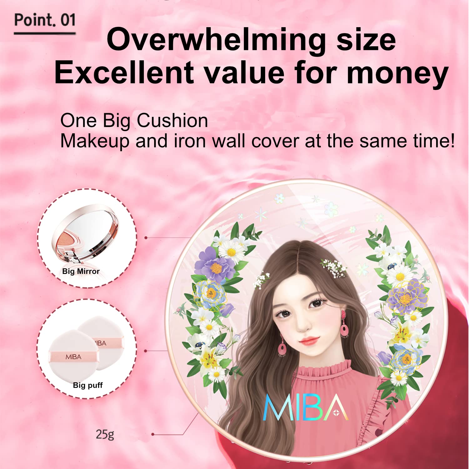 - [Point. 01] ◆ Overwhelming size .Excellent cost performance ◆ Life makeup and iron wall cover at the same time with one king cushion! ◆ Big mirror, big puff, 25g large capacity