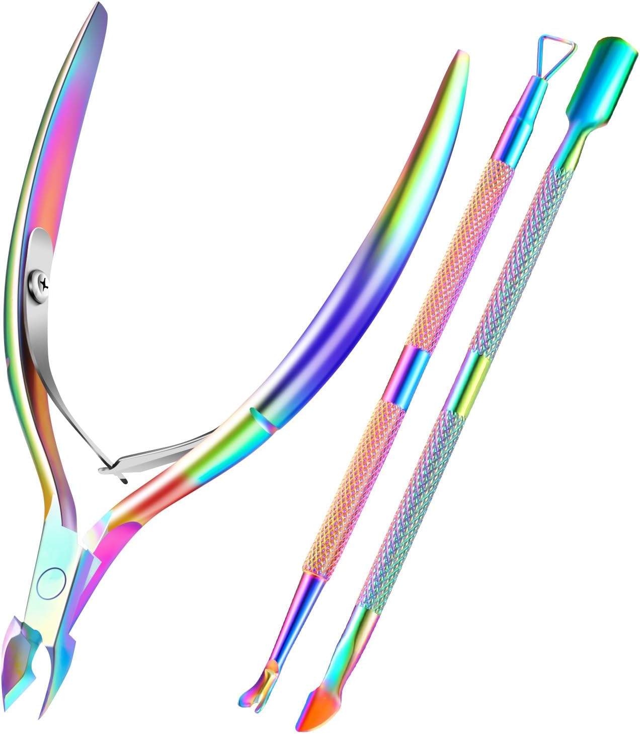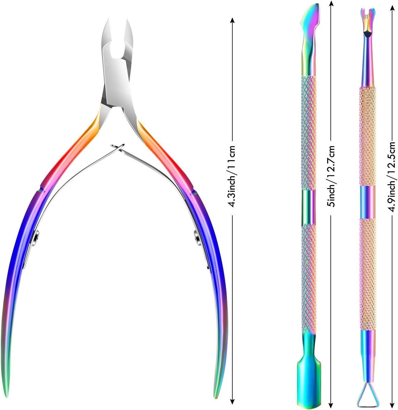 - Ergonomic Non-slip Handle Design -- Our professional cuticle remover tools set is designed with an ergonomic non-slip handle, providing you with a comfortable hand feeling, you can remover the cuticles more effectively. In addition, the chameleon design makes it a beautiful set of color manicure artwork.