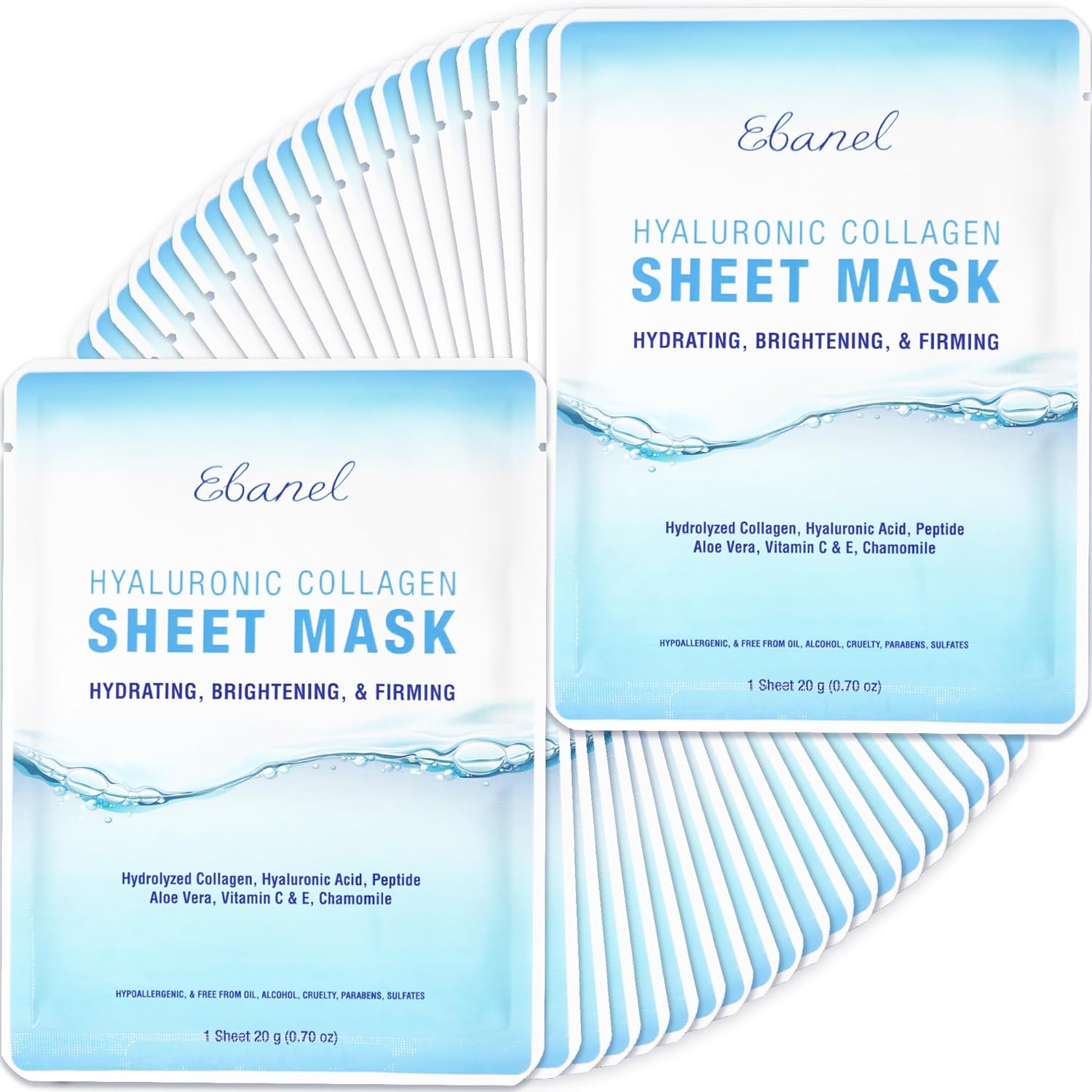 Ebanel 40 Pack Collagen Face Mask with Hyaluronic Acid, Vitamin C, Peptide, Aloe, Instant Brightening Hydrating Face Masks Skincare Korean Sheet Mask, Skin Firming, Lifting Anti Aging Facial Masks