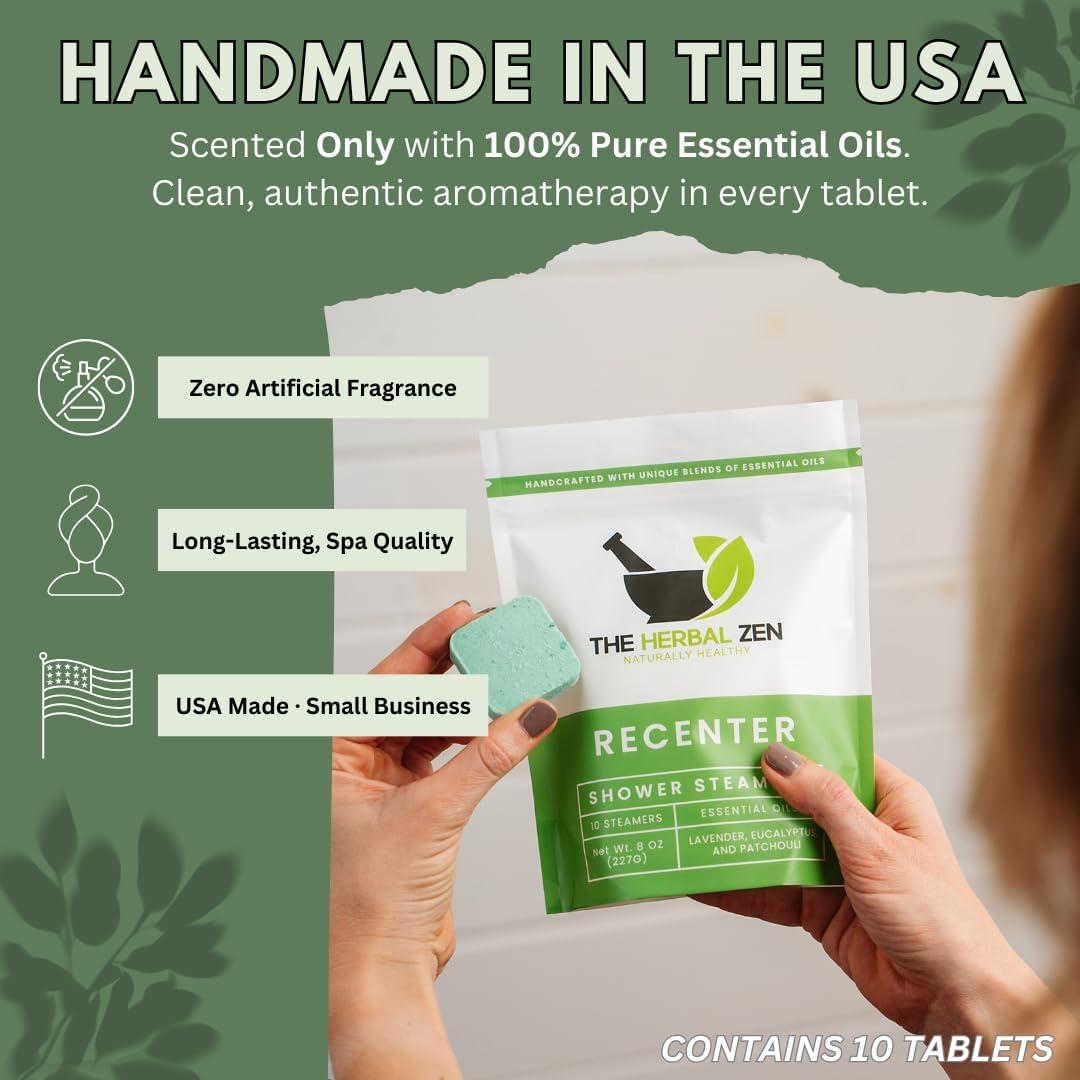 Recenter Shower Steamers Aromatherapy with Lavender and Eucalyptus Essential Oils, Aromatherapy Shower Bombs, Self Care Gift, Birthday Gift for Women, Bath Steamer for Women and Men