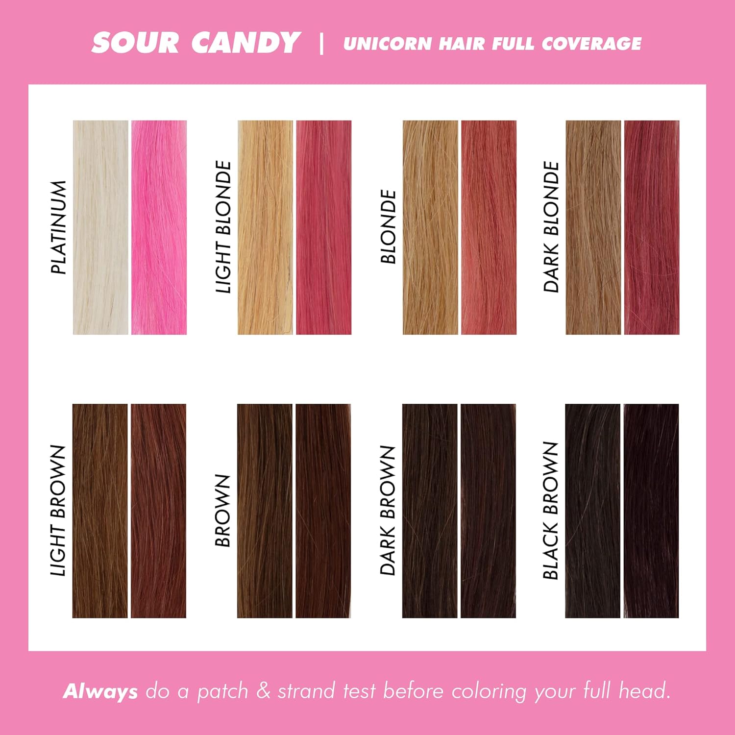 - Before You Use It: Unicorn Hair deposits super-saturated, vibrant color to pre-lightened platinum to medium blonde hair and adds a tint of color to dark blonde and light brown hair. The life cycle of the color depends on the shade and condition of your hair and how often you wash it. Always do a patch and strand test before coloring your full head because results may vary.