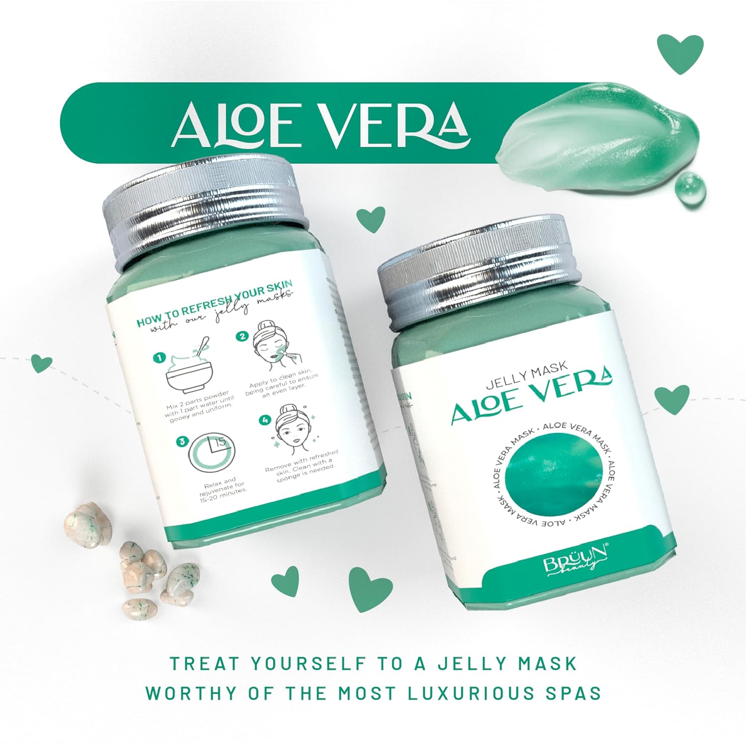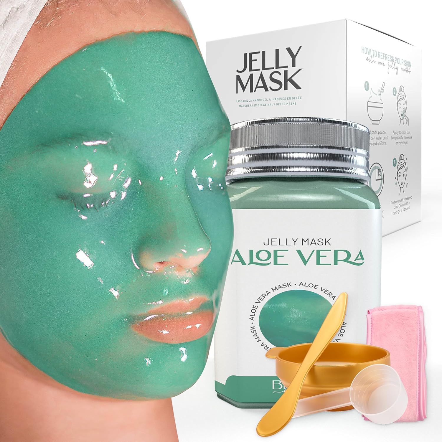 BRÜUN Jelly Mask Jar Aloe Vera Peel-Off Face Care Rubber Mask | 23 fl oz Skin Care Moisturizing Gel Mask Jar Spa Set