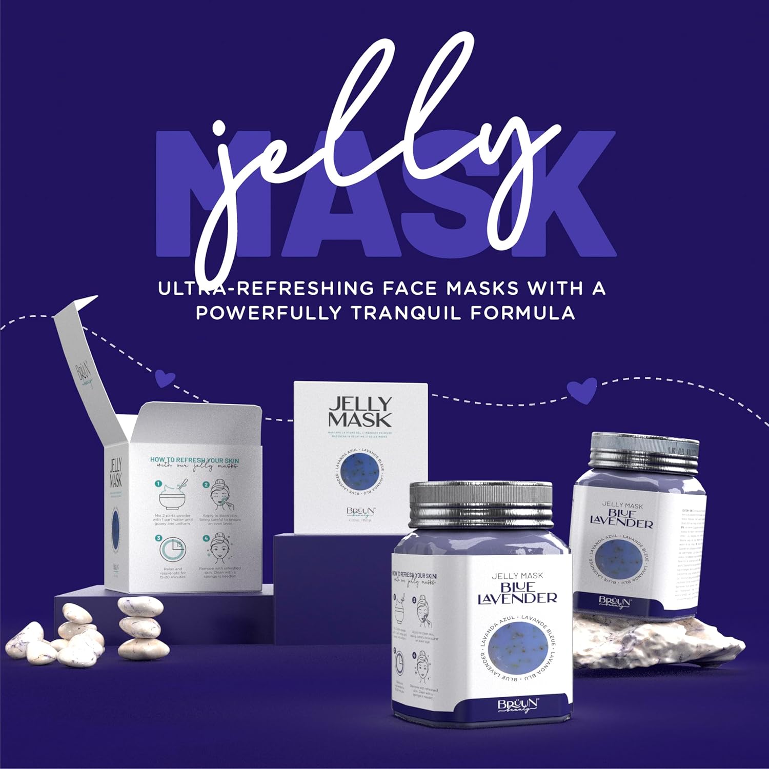 BRÜUN Jelly Mask Jar Blue Lavender Peel-Off Face Care Rubber Mask | 23 fl oz Skin Care Moisturizing Gel Mask Jar Spa Set