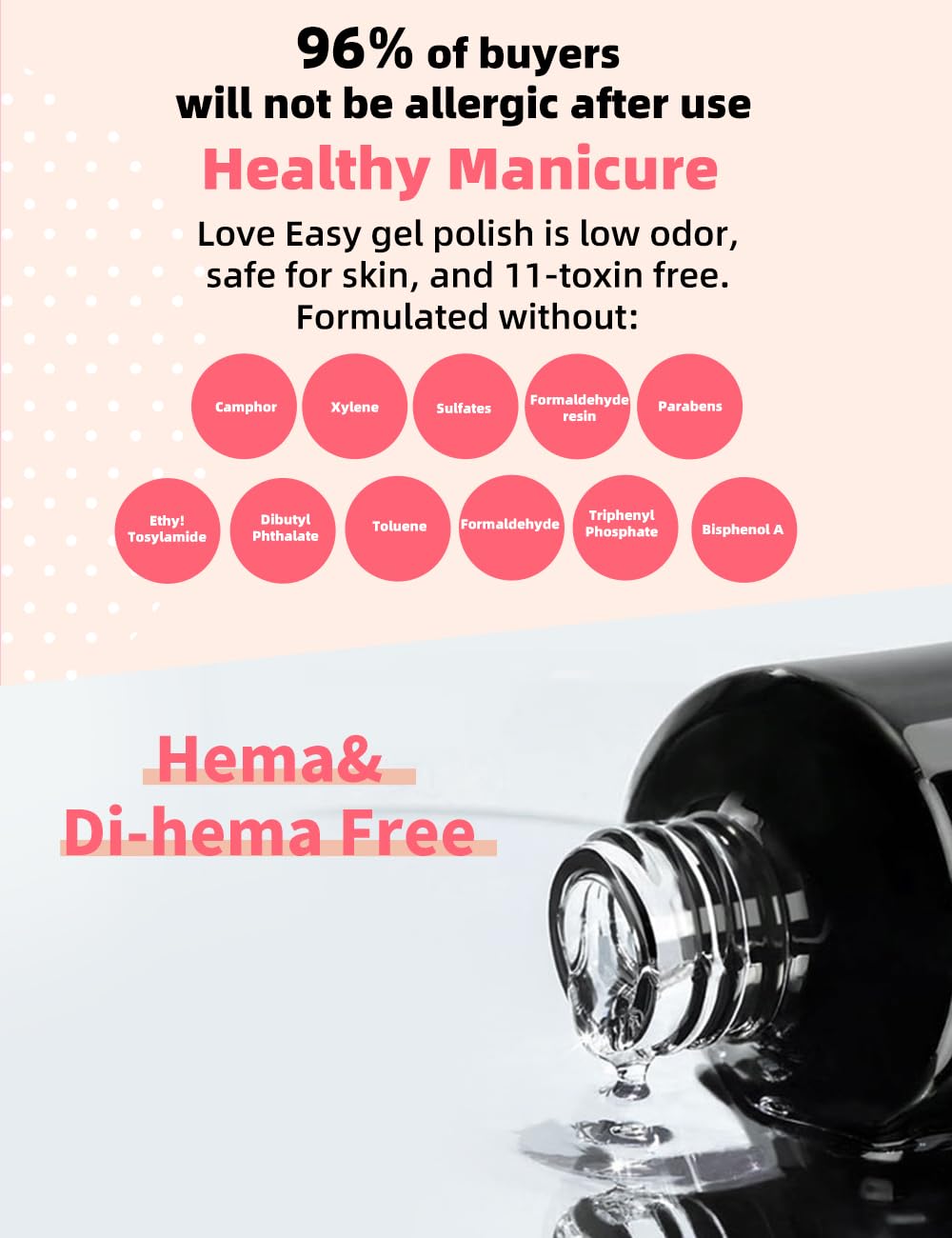 - Tips for preventing nail surface peeling off: (1) Polishing of the nail surface: Polish the front, side and trailing edge of the nail until there are no reflective spots on the nail surface. (2) Nail surface cleaning: It is recommended to use Nail dehydrator to remove oil and moisture from the nail surface. (3) UV/LED lamp time: It is recommended that the lighting time for base Coat, Color Gel and Top Coat 60-120 seconds.