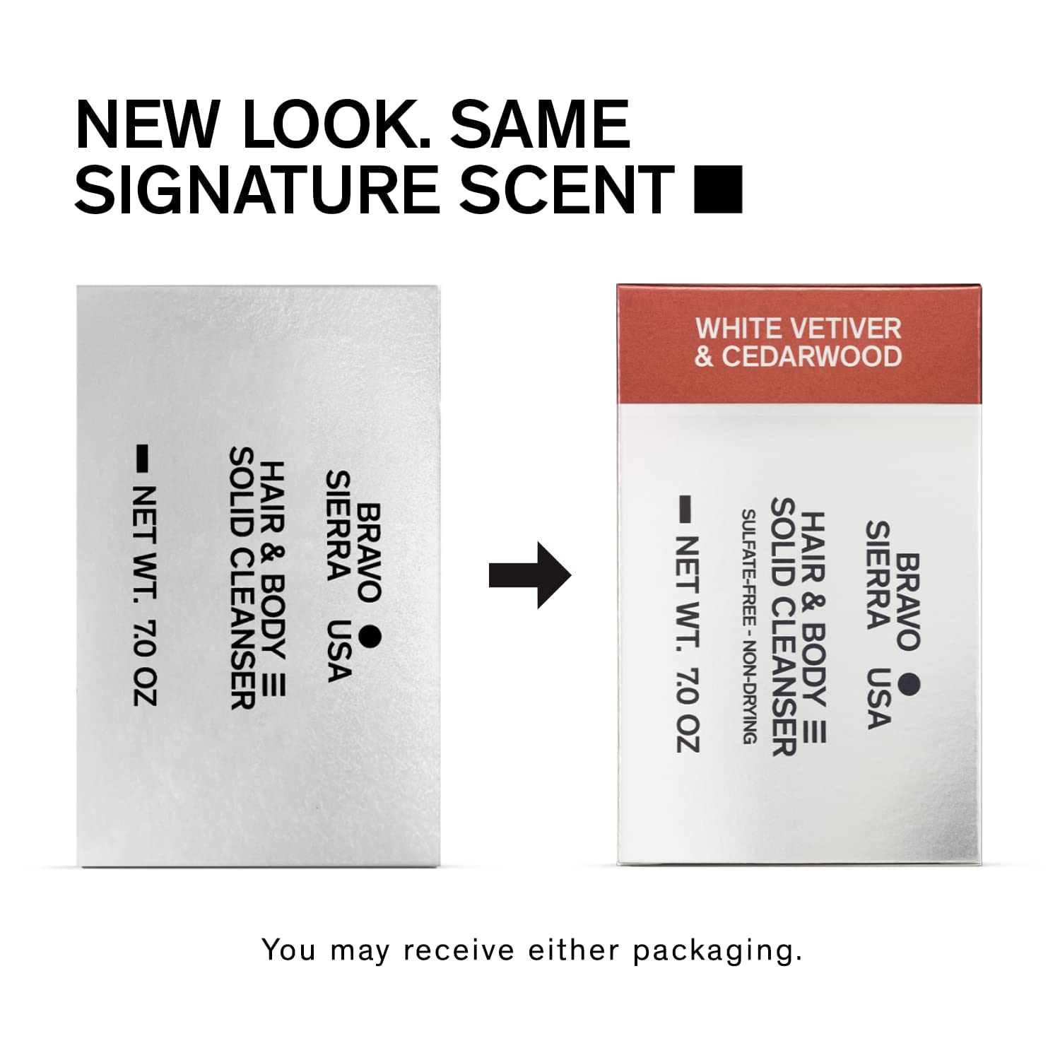 Bravo Sierra All-In-One Shampoo & Soap Bar for Men's Face, Hair & Body - White Vetiver & Cedarwood, 7 oz - Coconut, Shea Butter and Oat Flour for Soft Skin and Healthy Hair