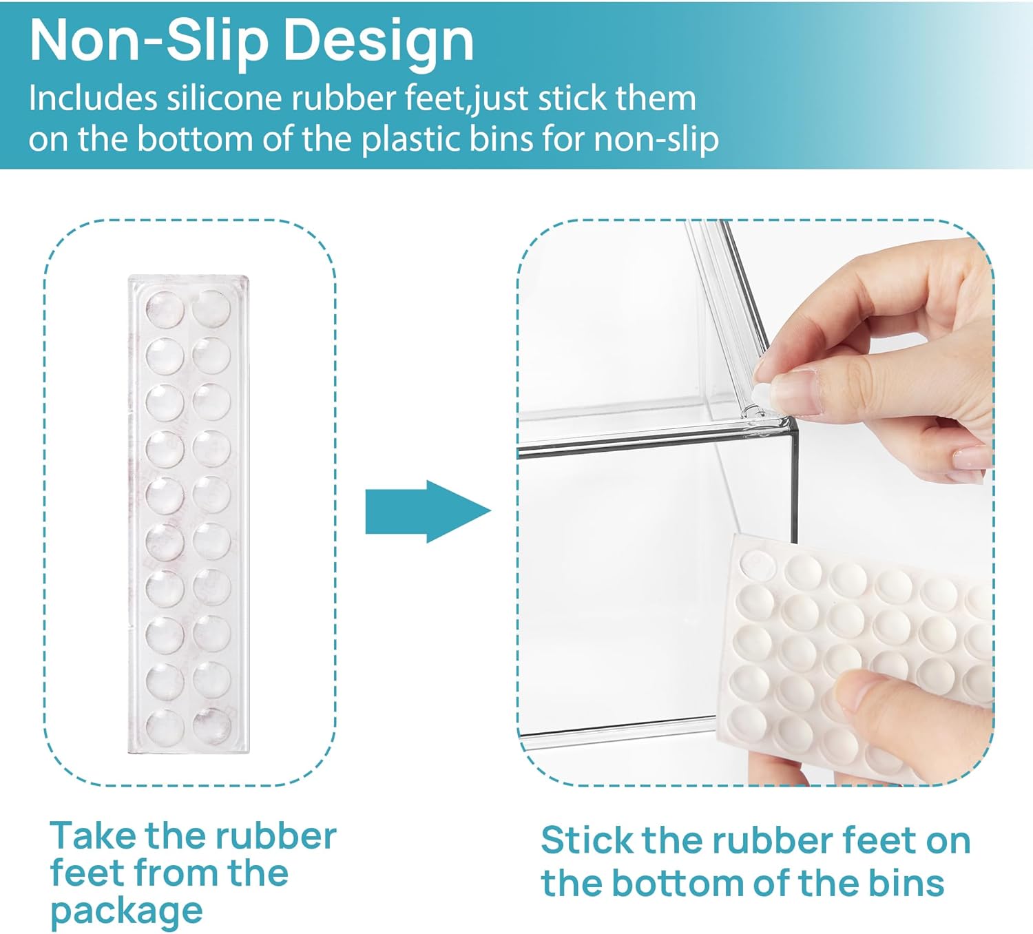 - [Built-in Handle and Non-Slip] The storage containers are designed with pull-out handles, it is convenient for you to store and take out items.Extra silicone pads are included, just stick them on the bottom of the outer box for non-slip,the outer box will not move when the drawer is pulled out,providing you with easy organization and storage.
