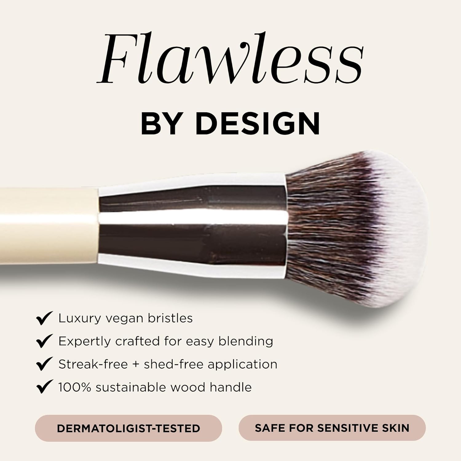 - TOP QUALITY BRUSH: This foundation brush helps liquid, cream, or powder makeup glide on seamlessly. Its super-soft, vegan, cruelty-free bristles are firm yet flexible, ensuring your makeup brush is always at its best! Its sustainable wood handle construction not only adds to its luxe appeal but also warrants long-lasting durability.