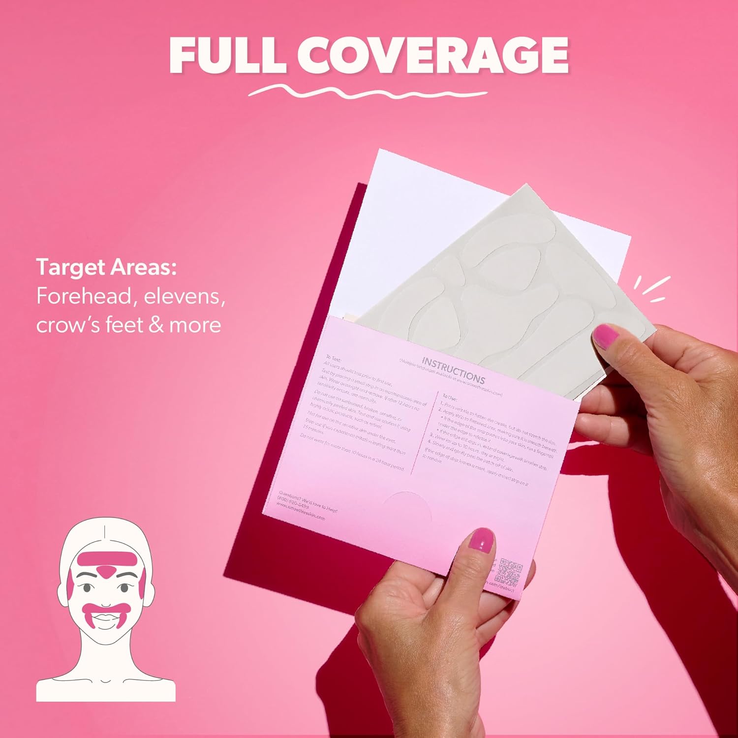 Smoothies Full Coverage Wrinkle Patches for Face Overnight - Facial Patches for Forehead, Elevens, Crows Feet and more, 192 Facial Adhesives per Box - Face Tape, Made in the USA