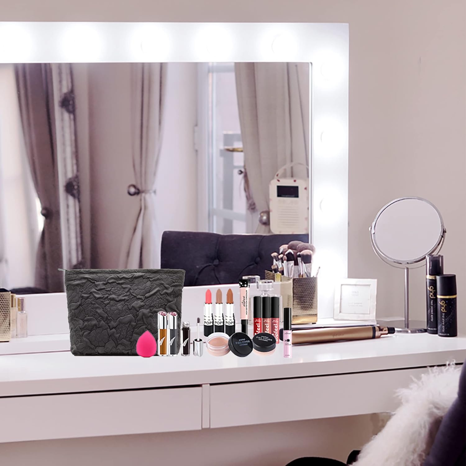 - Large Capacity:Large enough to fit all of your makeup,yet small enough to take it on-the-go.Dimensions(Overall):10inchesX7inches.