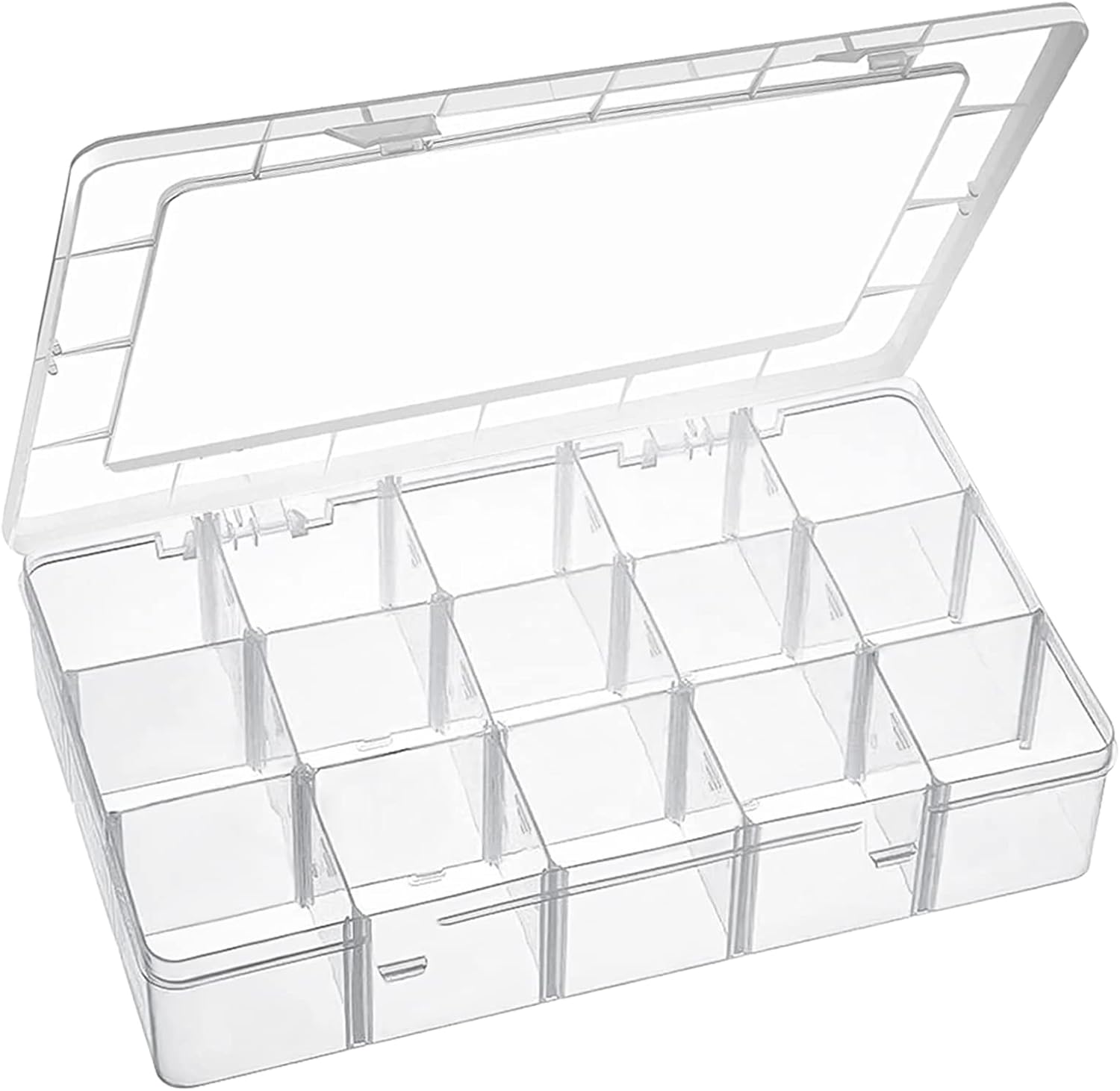 15 Large Grids Plastic Organizer Box with Dividers, Clear Compartment Container Storage for Washi Tapes Beads Crafts Jewelry Fishing Tackles, Size 11 x 6.3 x 2.2 in