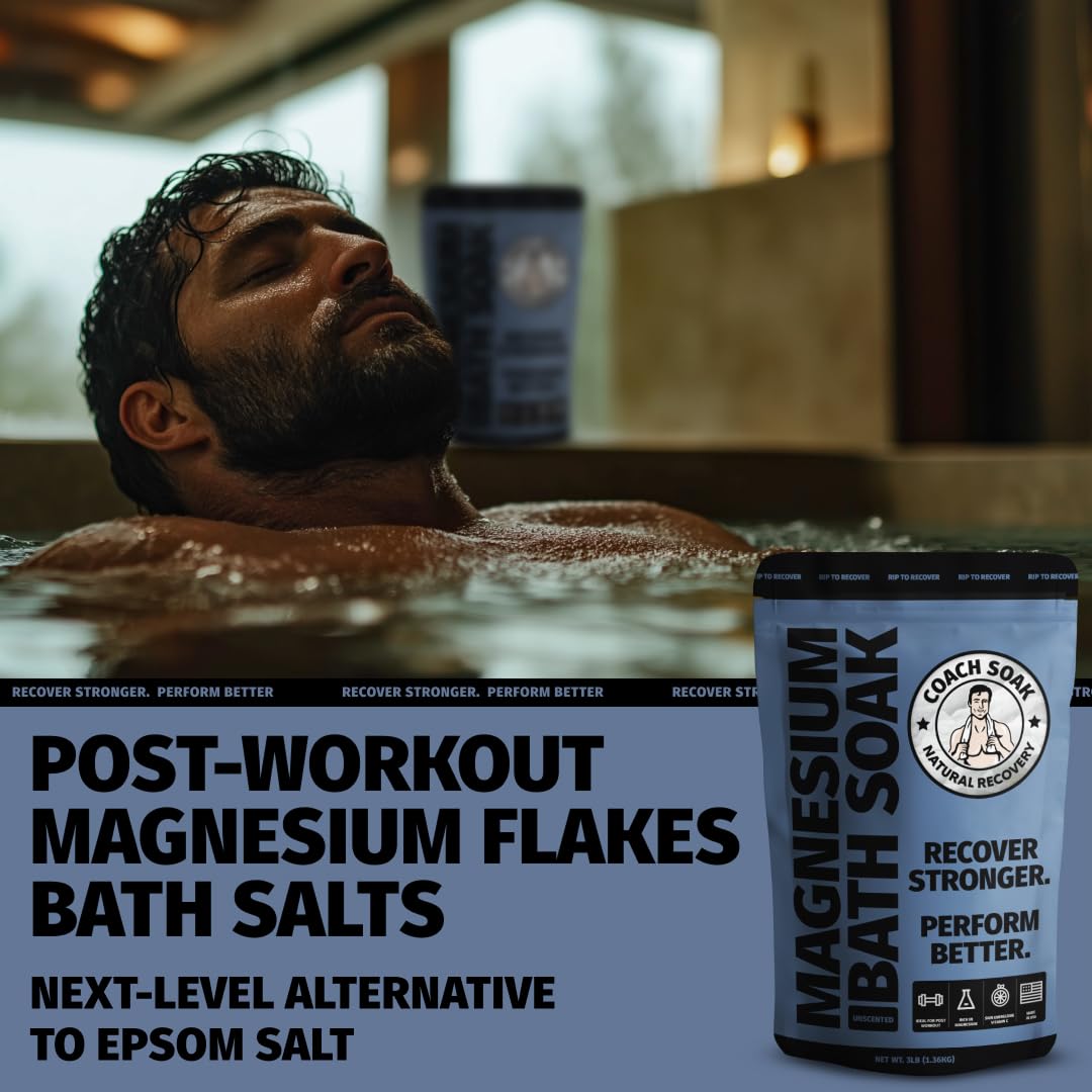 Coach Soak Recovery Bath Soak - Alternative to Epsom Salt Bath Soak - Fast-Absorbing Pure Magnesium Flakes with 21 Minerals, Bath Salts & Essential Oils - 3 lb (1 Pack) - Unscented