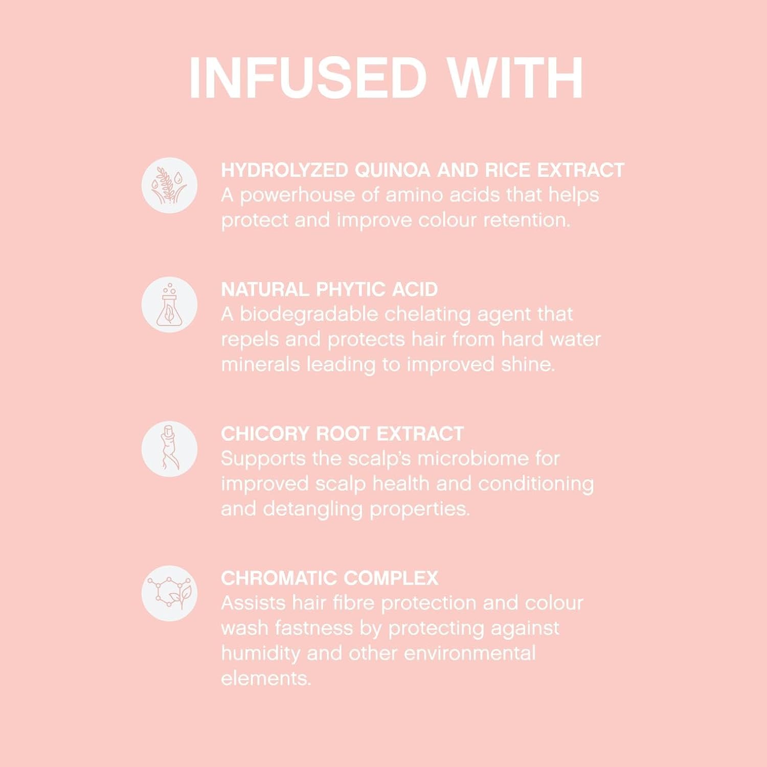- Acidic pH Shampoo: Our pH balanced shampoo gently purifies without stripping colour, keeping your hair nourished and hydrated