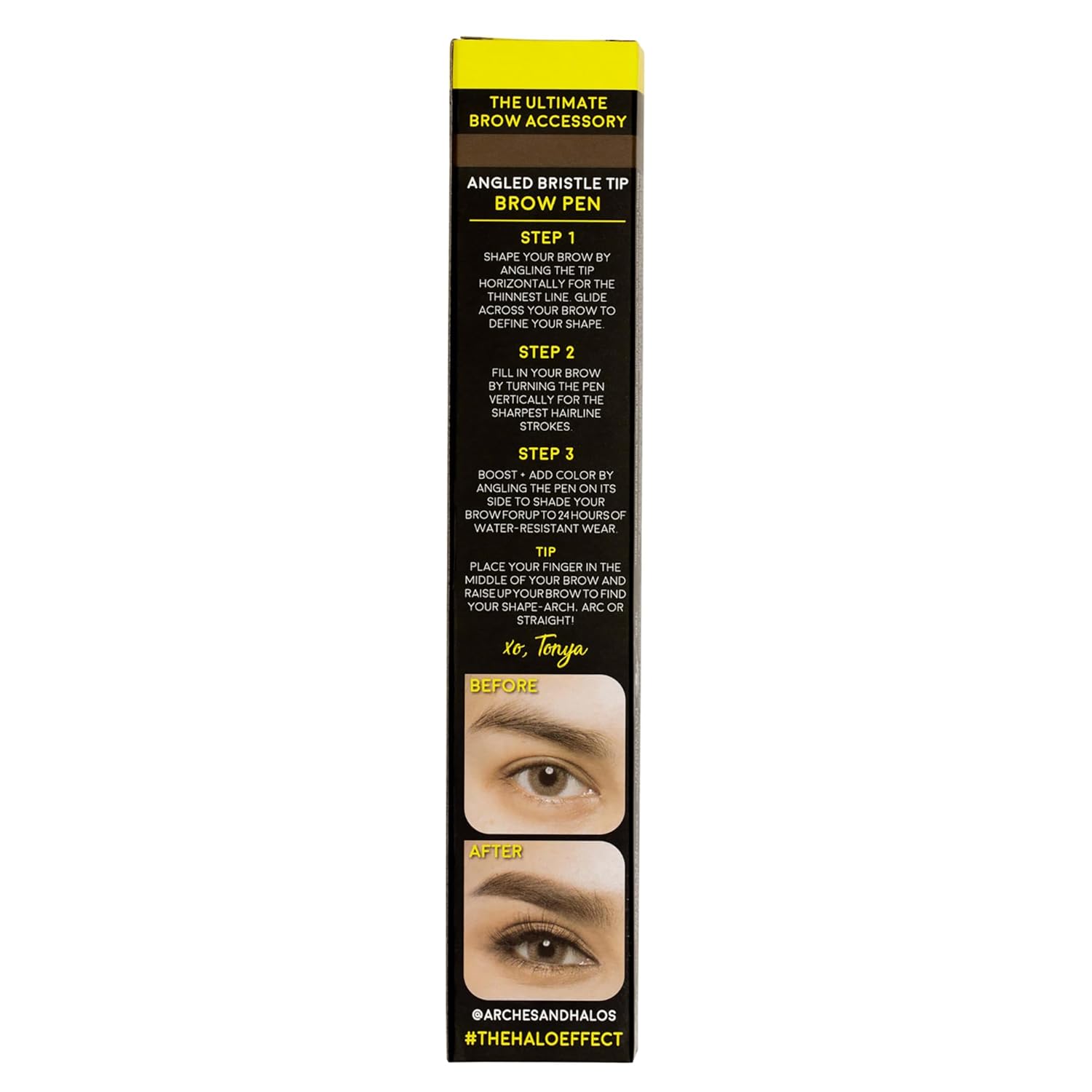 Arches and Halos Angled Bristle Tip Waterproof Brow Pen - Water Based and Smudge Proof Eyebrow Pencil - Extended Wear - Neutral Brown - 0.051 oz