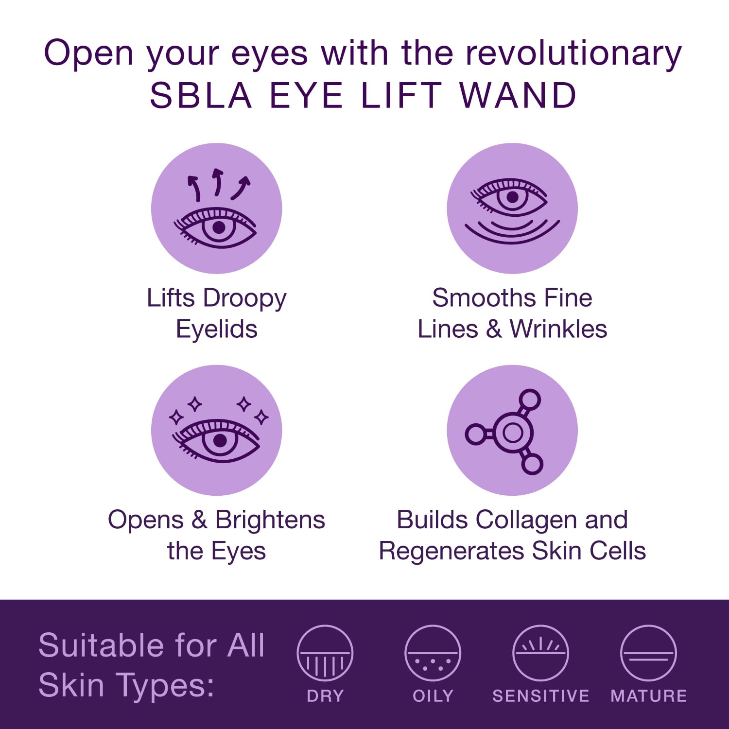 - THE FIRST-EVER TOPICAL EYE LIFT – Experience a breakthrough in eye care with the revolutionary SBLA Eye Lift Wand. Designed to visibly lift droopy eyelids, smooth creases, brighten the eye area, and diminish under-eye puffiness in minutes using our patented SBLA66Peptide.