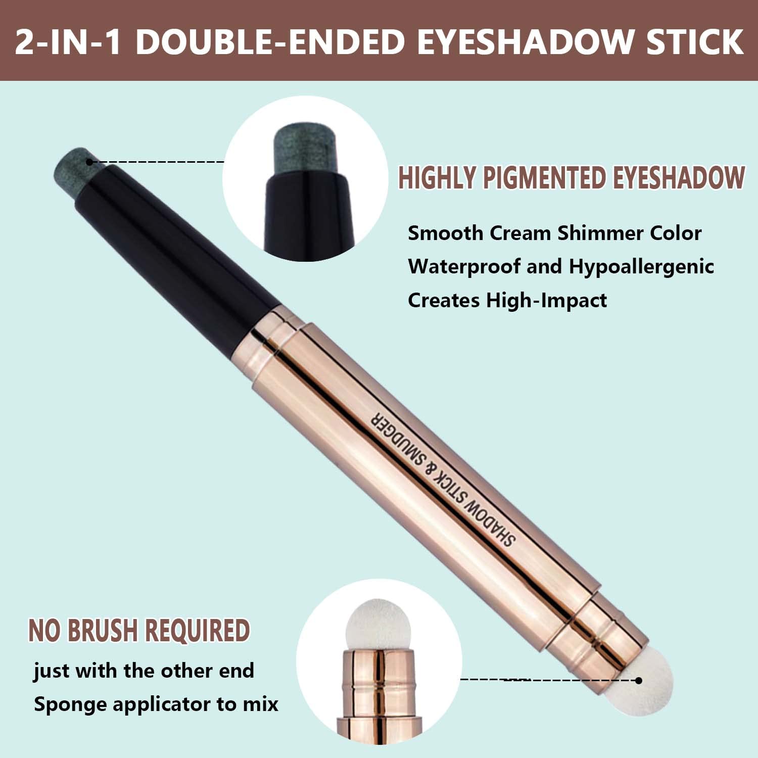 - WATERPROOF AND HYPOALLERGENIC : This waterproof and hypoallergenic formula eyeshadow stick, cream-to-powder eyeshadow stick glides effortlessly across lids, then dries to a waterproof, anti-wrinkle powder finish to contour, highlight and create multi-dimensional eye makeup.