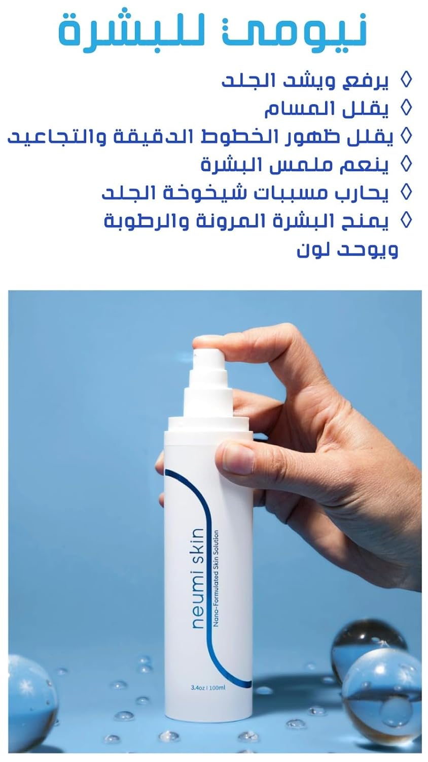 - Among facial skin care products, Neumi Skin is easy to use. With our face spray delivery system makes it easy to apply Neumi Skin multiple times a day under or over makeup. Just spray & you're ready!