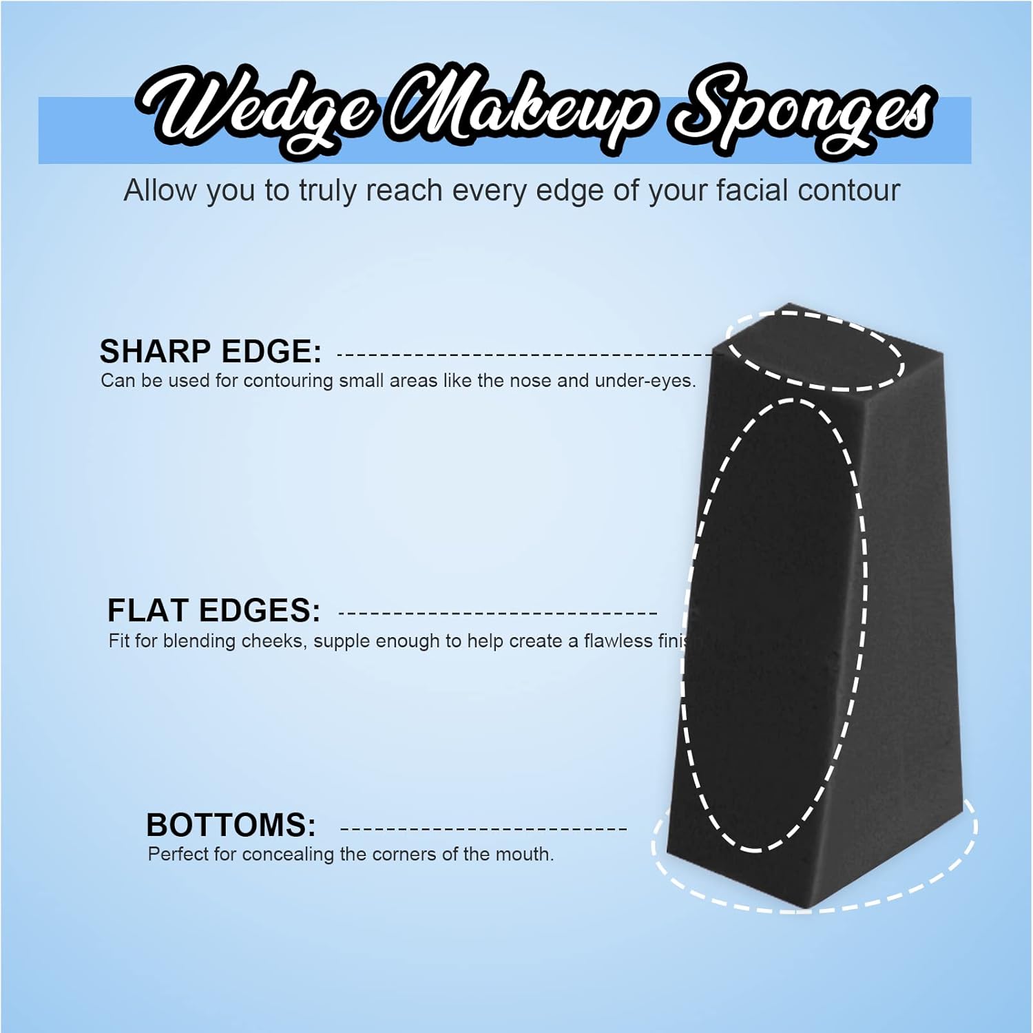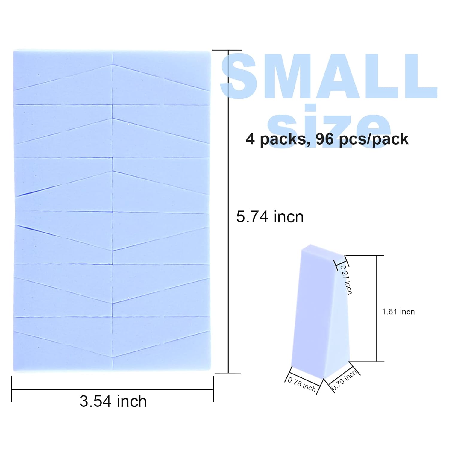 - Cosmetic Wedges Sponges: Professionally wedge shaped makeup sponge can hug every curve of your face, like the under the eyes, nose, mouth, meet all needs to makeup for full face. ATTENTION! These are small size makeup sponge wedges, please read the size detail carefully before place order.