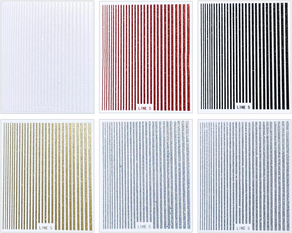 - 【6 Sheets/Set】You will get 6 sheets different colorful flash strip lines nail art stickers, which can offer you multiple choices and meet your needs, and the size of the sticker is about 77x90mm / 3.03x3.54in.