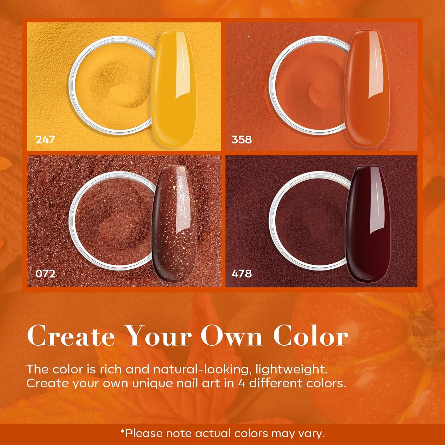 AZUREBEAUTY Dip Powder Nail Kit Starter, Fall Winter Yellow Orange Brown Glitter 12 Pcs 4 Colors Acrylic Dip Powder Liquid Set with Base/Top Coat Activator for French Nail Art Manicure DIY Gift