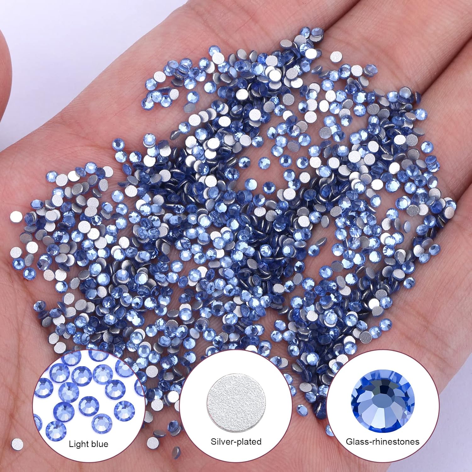 1440Pcs Light Blue Crystal Rhinestones,Glass Flatback Rhinestones Gemstones Small for Nail Face Makeup Art Crafts Clothes Decoration - (SS6,2.0mm,Light Blue)