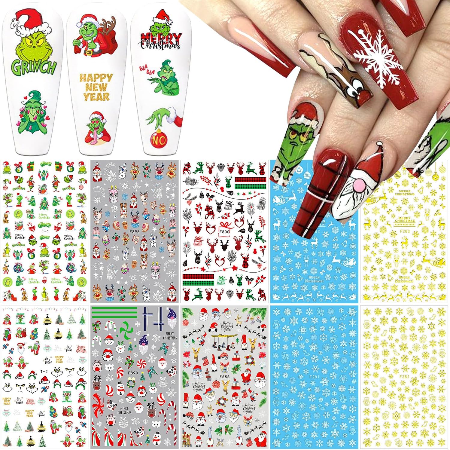 - 【Premium Material】- Christmas nail decals are made of environmental friendly, skin friendly, and non-toxic materials. The nails still remains glossy after remove the stickers. You can design your own unique Christmas nail decorations.