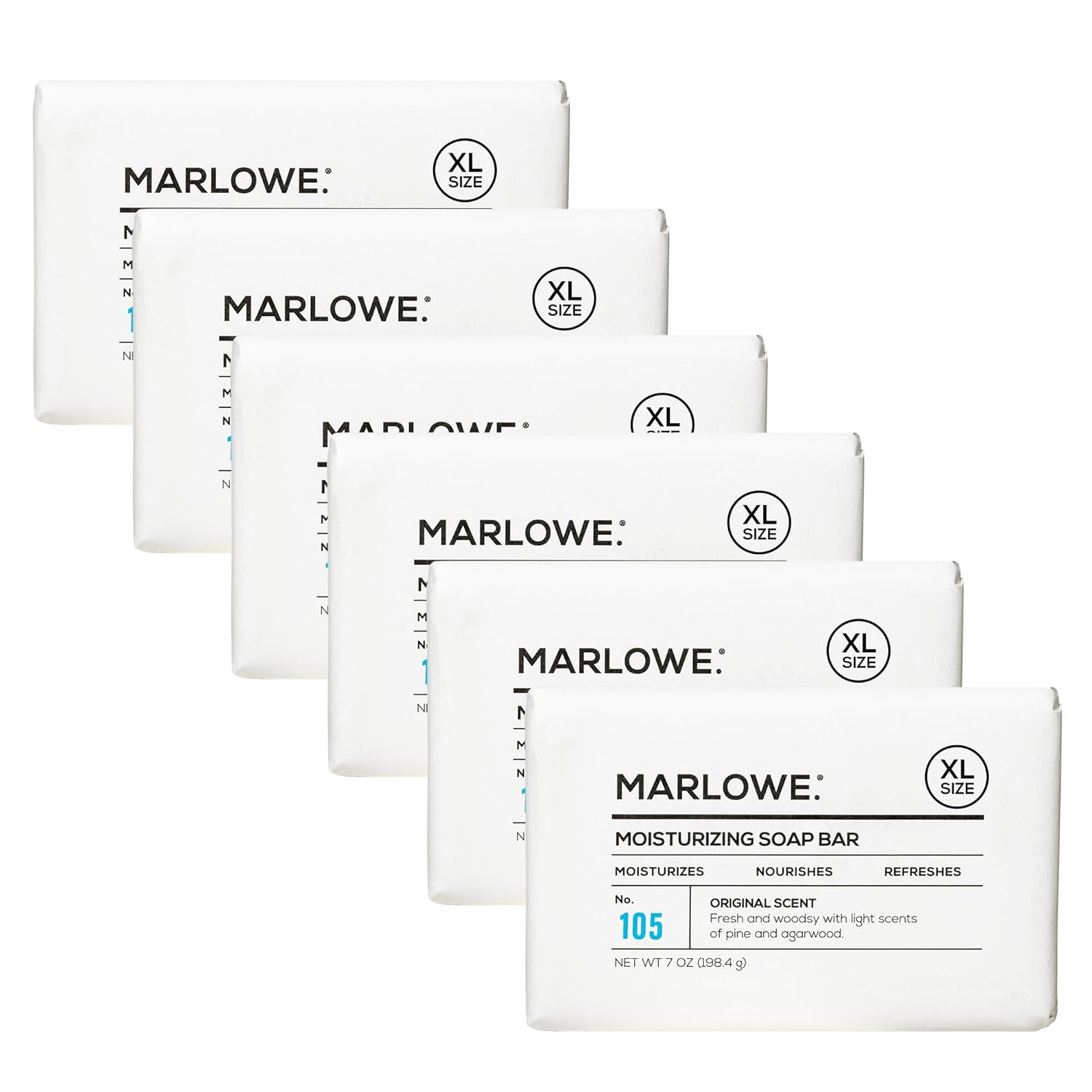 MARLOWE. No. 105 Bar Soap for Men 7 oz (6 Bars) Moisturizing Body Soap, Nourishing & Refreshing with Natural Extracts, Shea Butter, Olive Oil & Green Tea Extracts, Original Sage & Fir Scent