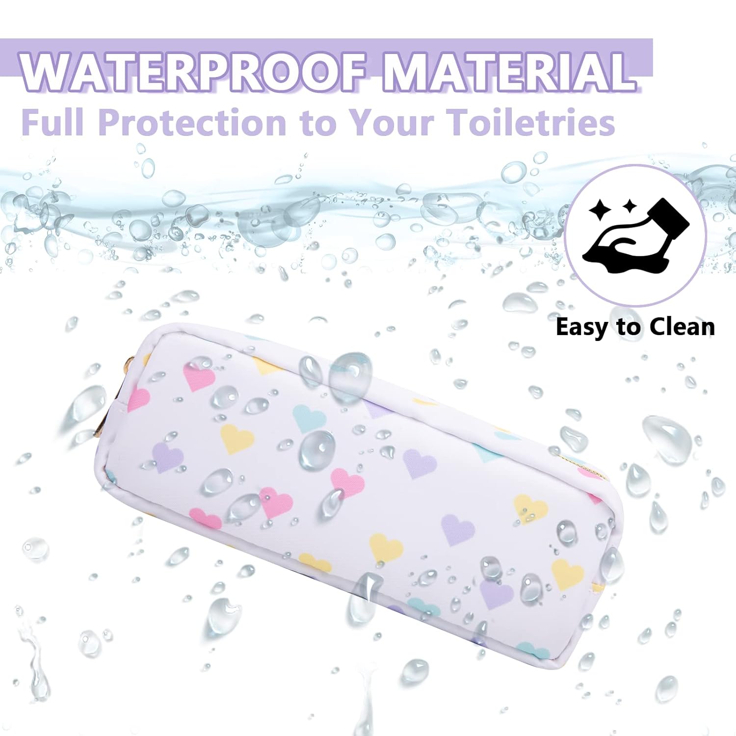 - 【Multiple Options】The waterproof makeup bag has four sizes, Mini(4.75''*2''*5''), Small(9.5''*2''*5''), Large(11''*5''*8'') and Slim(2.75*8''*2.75''). You can choose the right size according to the items you want to store. We have four types of patterns, Pink Heart, Houndstooth, Checkerboard grid and White Heart. You can enjoy choosing the pattern you like.