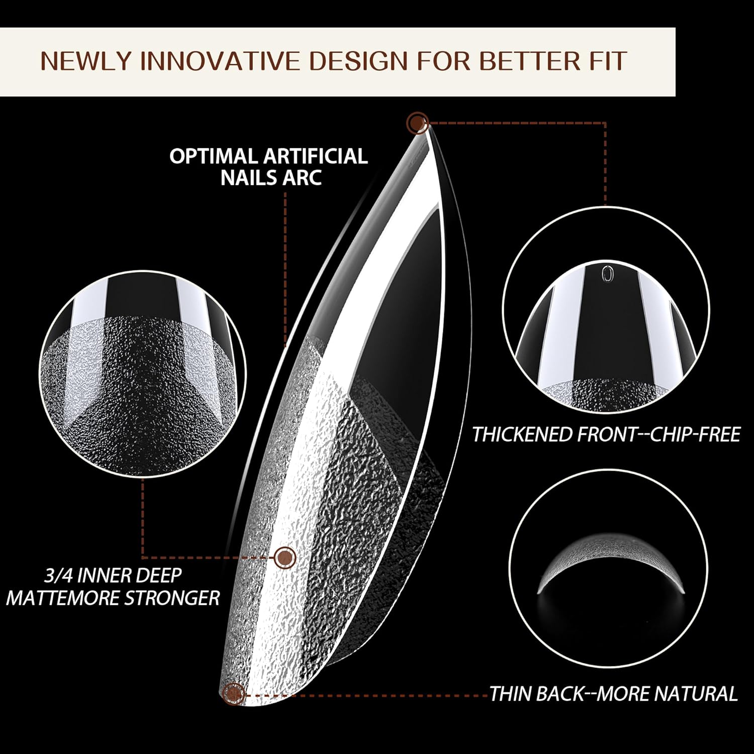 - ❤️【Updated 3/4 Inner Deep Matte】 Our extra short almond fake nails have been upgraded with 3/4 inner deep matte texture, providing stronger adhesion to your natural nails. The almond nail tips are pre-shaped, saving your time and effort. No worry that your nails will become thinner and uglier due to polishing, better care for your nails!